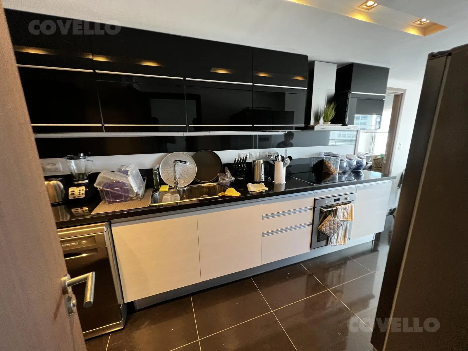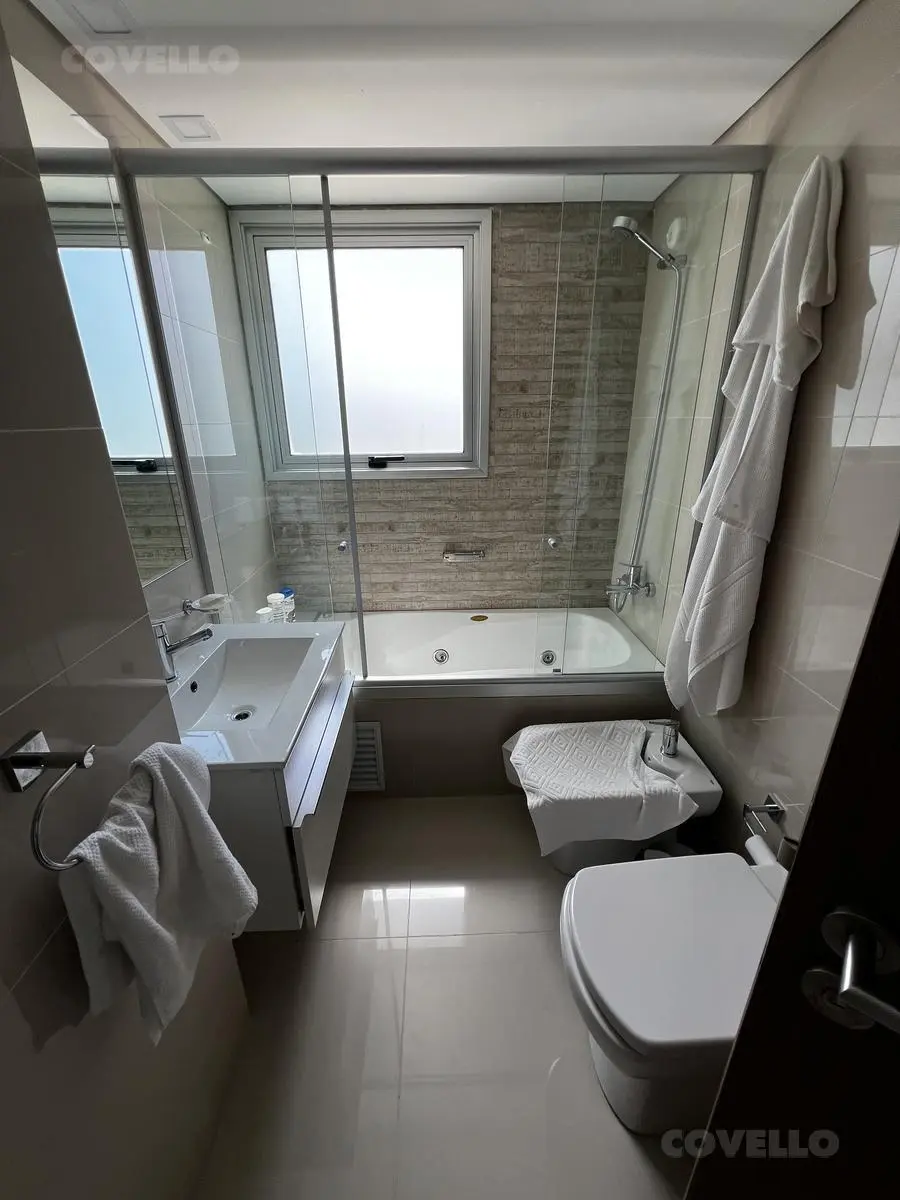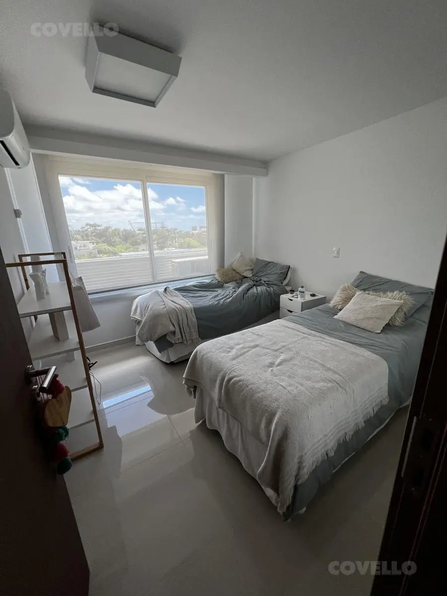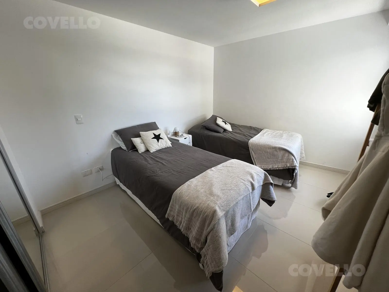 Departamento con exclusiva vista al mar de 4 ambientes. Tres dormitorios; dormitorio principal en suite con baño completo y vestidor con salida a balcón terraza con vista al mar. Amplio Living comedor con balcón terraza. Cocina con comedor diario con lavadero y vista al balcón. Segundo bano completo. Toilette. Dependencia de servicio. Parrillero individual. Palier Semi privado. Cochera