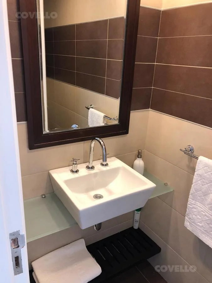 Terraza, living comedor, toilette, 2 dormitorios en suite, 3 baños, cocina y garage.