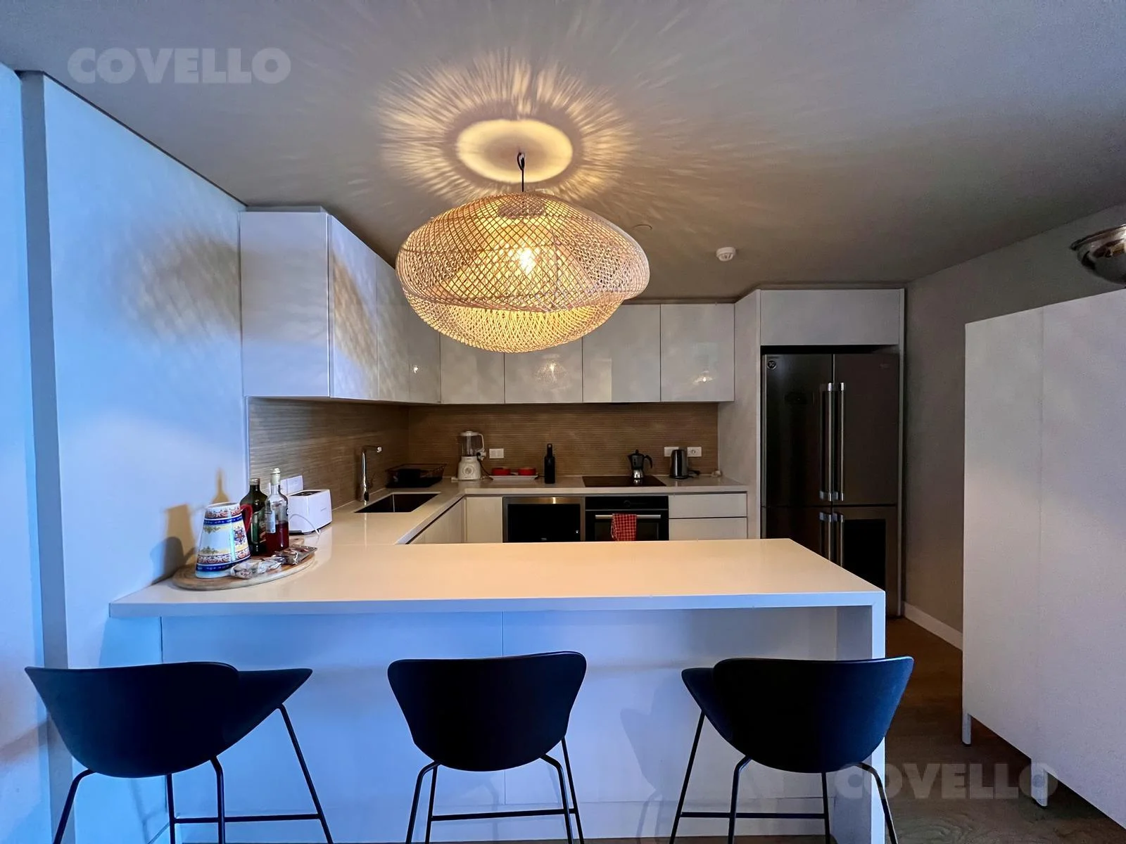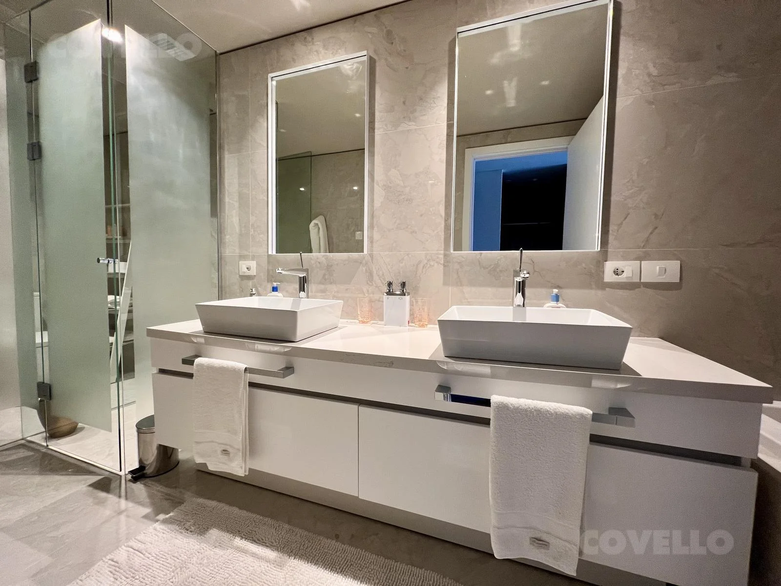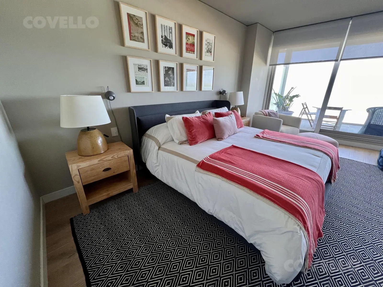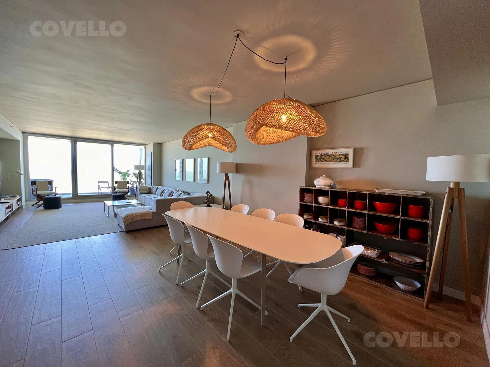 Este apartamento decorado exquisitamente y con muebles de Bo Concept posee una superficie total de 209 m2, consta de un dormitorio principal en suite con vista al mar y salida a la terraza, otro dormitorio con escritrio y baño completo, una cocina integrada que se abre a un luminoso y espacioso living comedor con salida a la terraza donde podrás disfrutar de las mejores vistas.