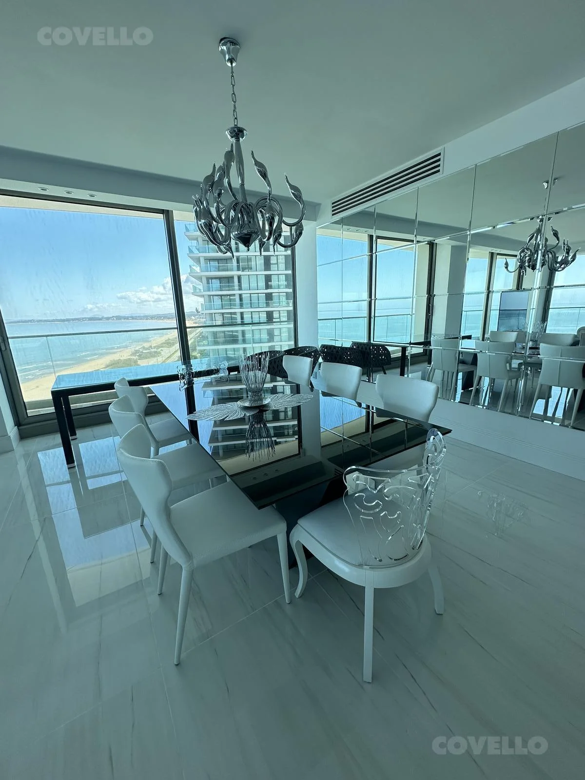 Hermoso Dpto. de 3 dormitorios y servicio a estrenar en edificio de lujo, está amueblado con equipamiento sumamente fino y tiene unas hermosas vistas a la playa mansa.