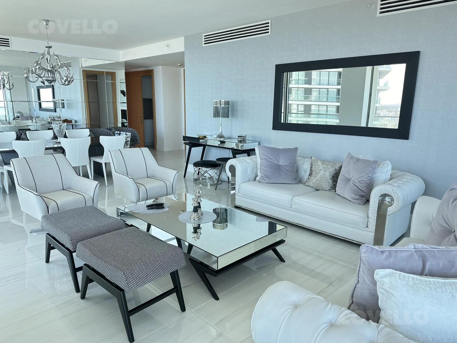 Hermoso Dpto. de 3 dormitorios y servicio a estrenar en edificio de lujo, está amueblado con equipamiento sumamente fino y tiene unas hermosas vistas a la playa mansa.