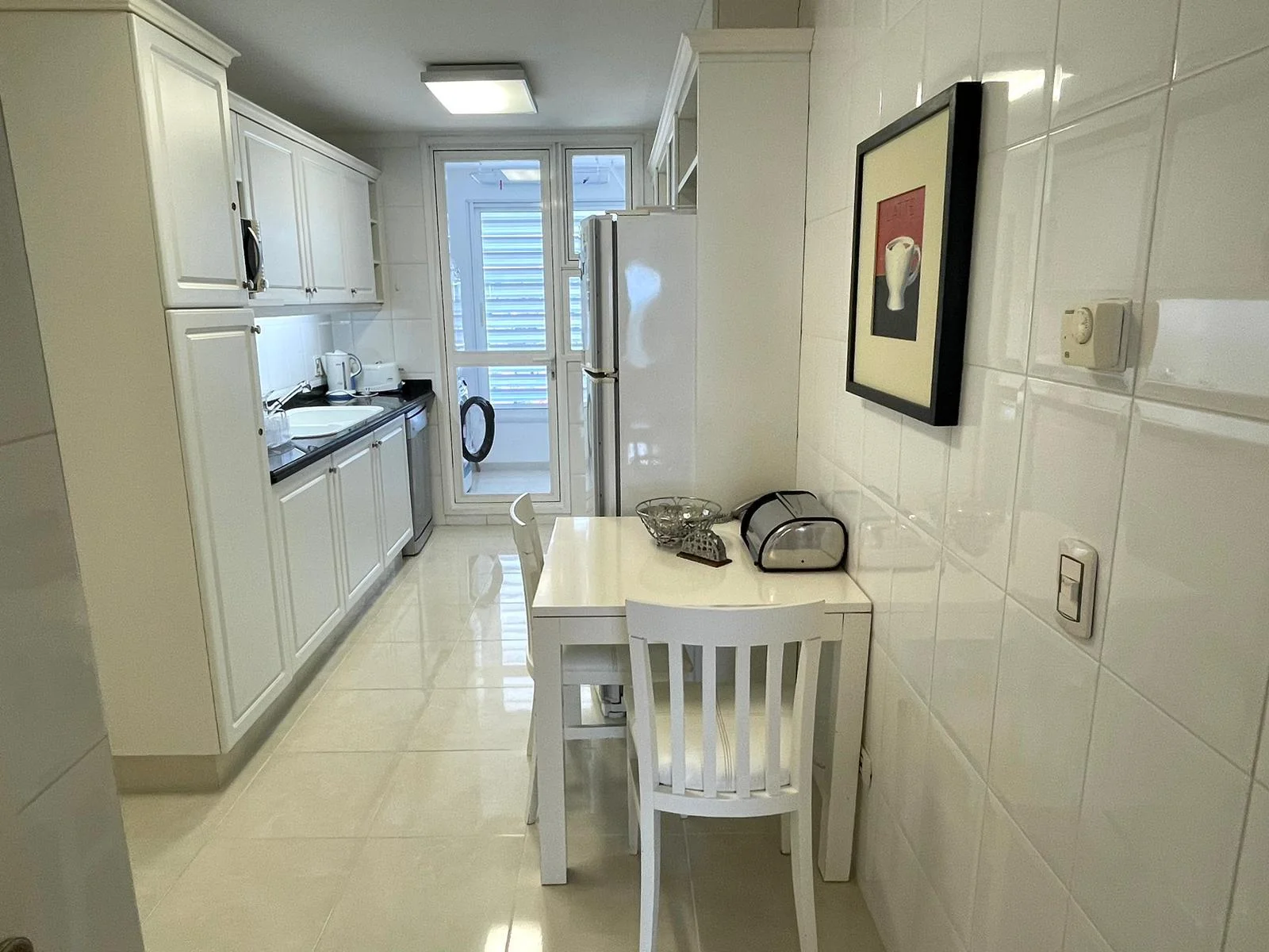 Cocina con desayunador y terraza lavadero.
