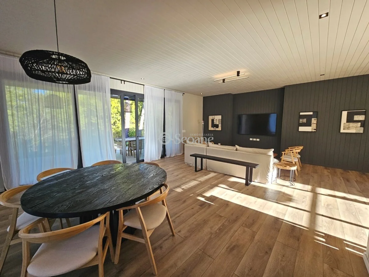 Moderna y elegante casa, gran living comedor con salida a deck con parrillero techado. Cocina estilo americana, area de servicio (que puede ser como un cuarto dormitorio o escritorio), lavadero. Tres cómodos dormitorios en suite.