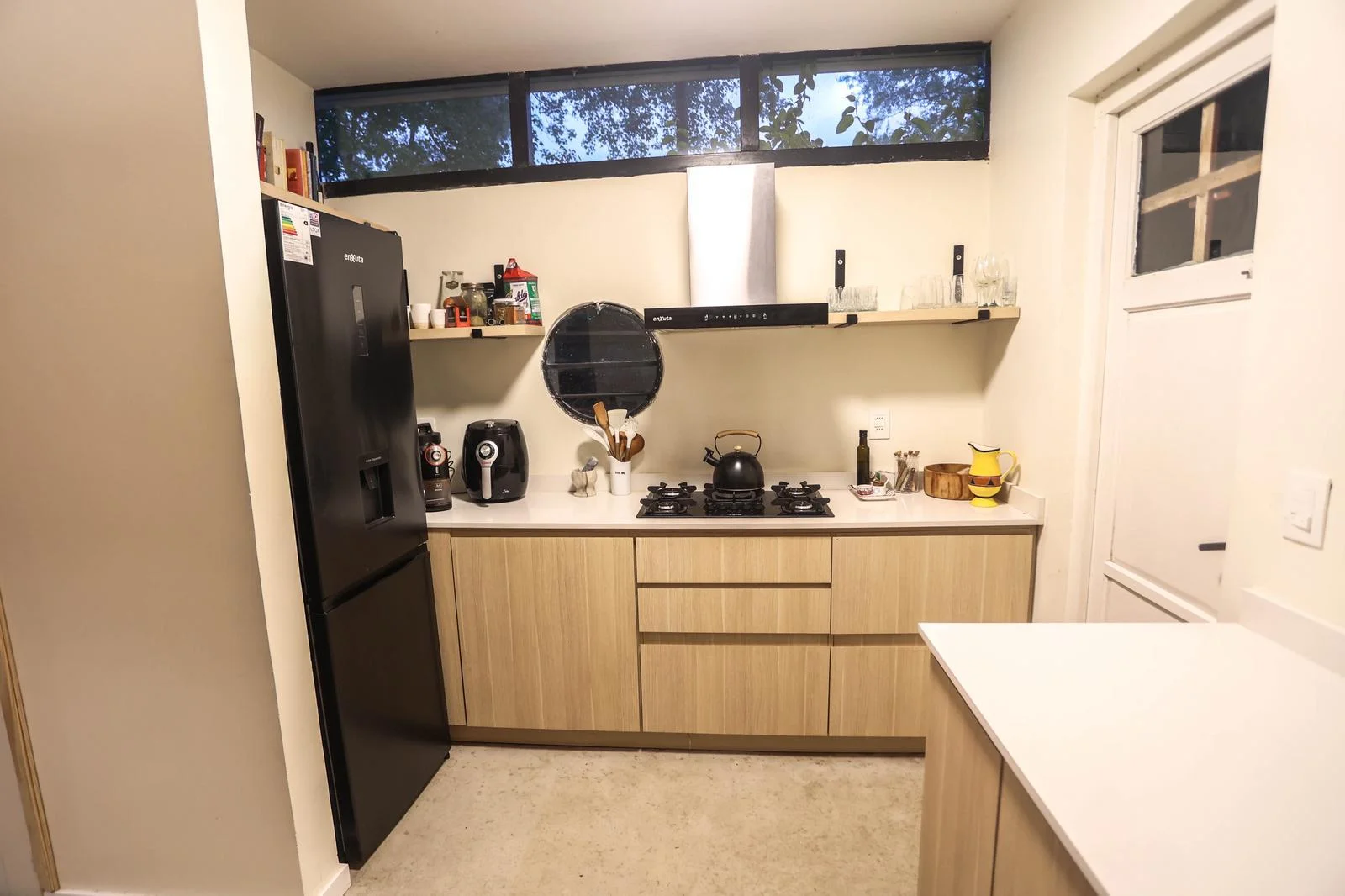 Amplio living comedor con cocina integrada, con salida a la terraza equipada con parrilla y mesa exterior, ideal para disfrutar con amigos.