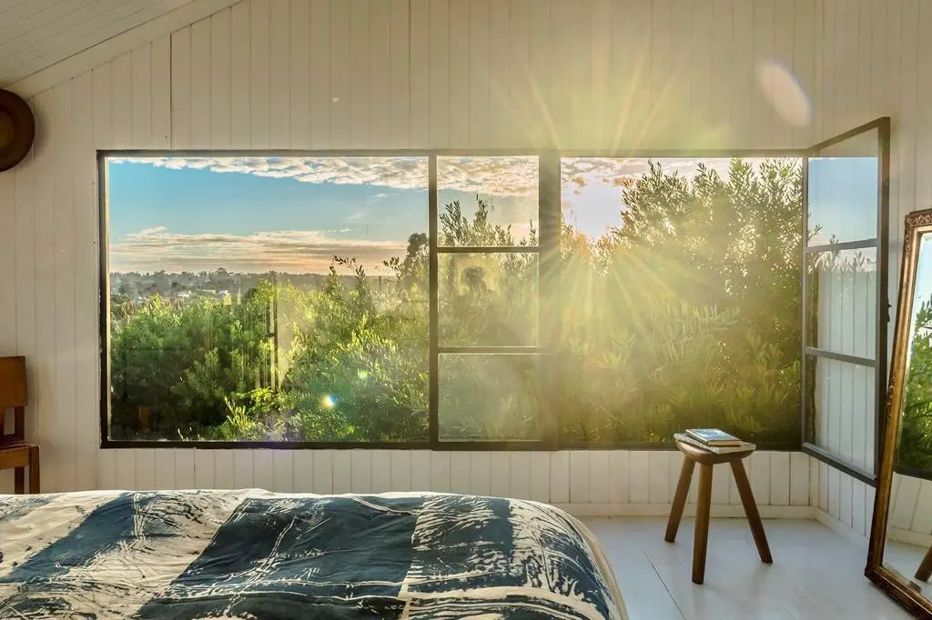Desde la habitación principal, que tiene un balcón, se puede ver el amanecer sobre el mar.