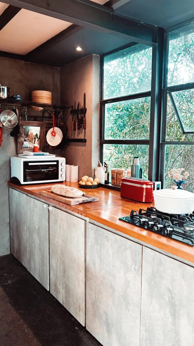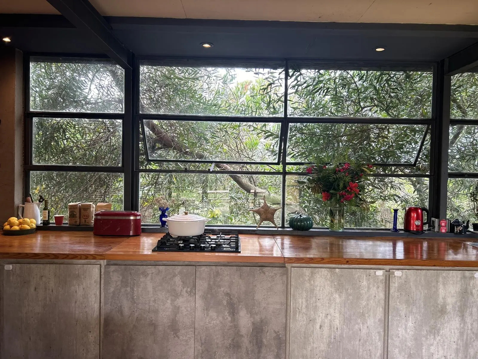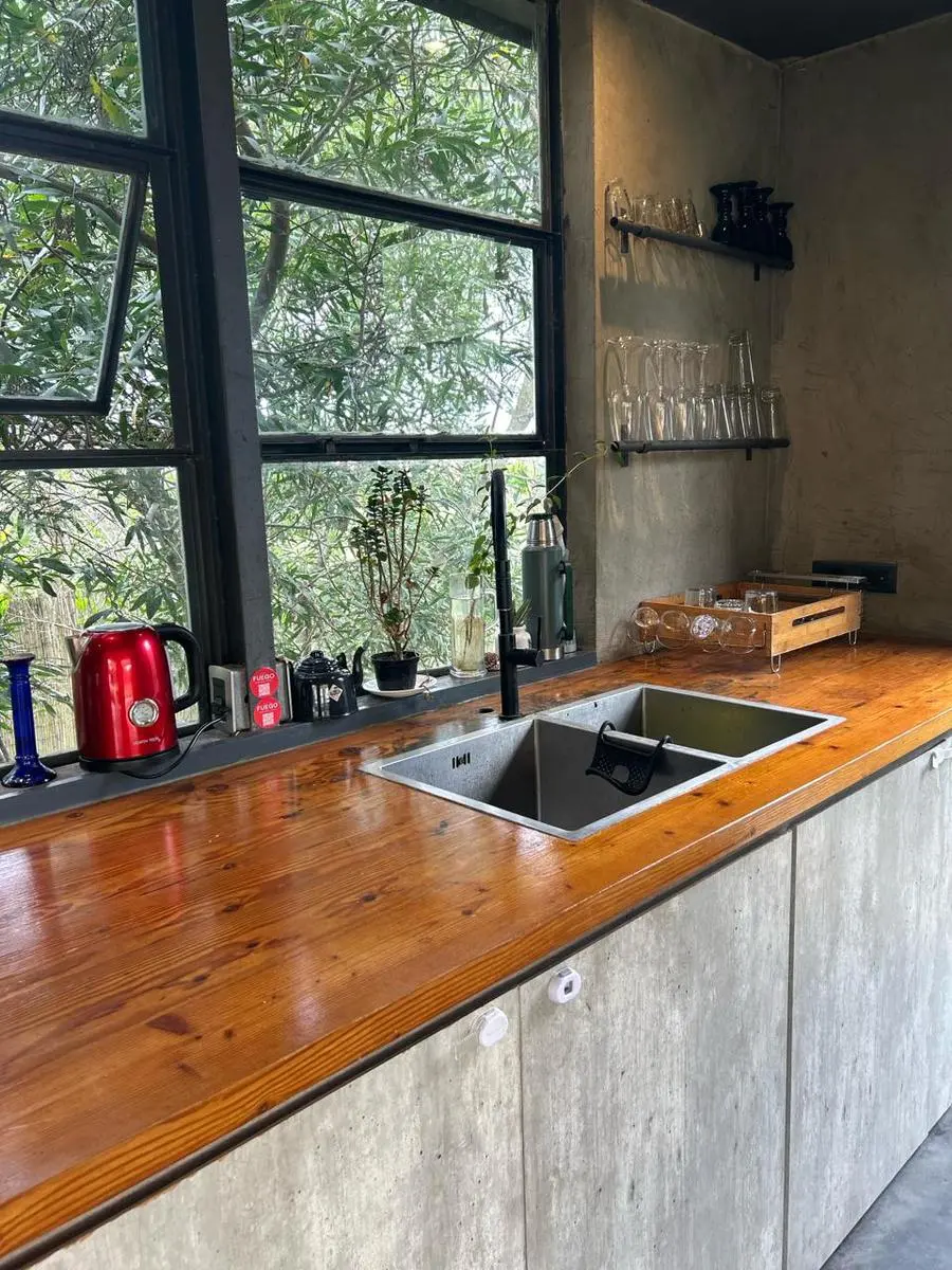 The house is located on a hill with a view of the sea. From the master bedroom, which has a balcony, you can see the sunrise over the sea.