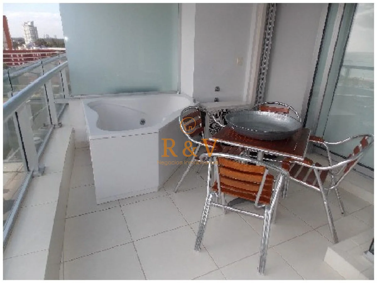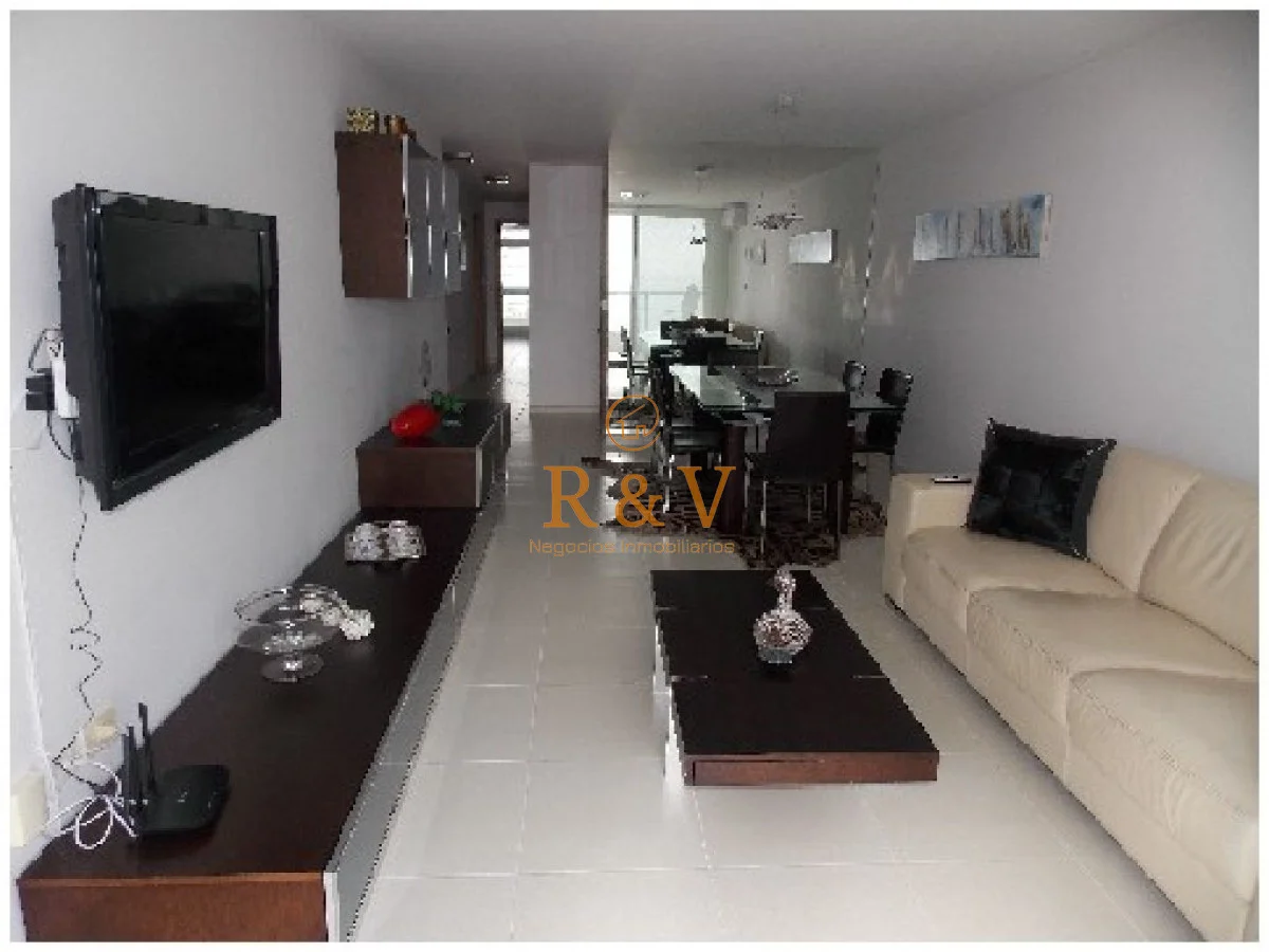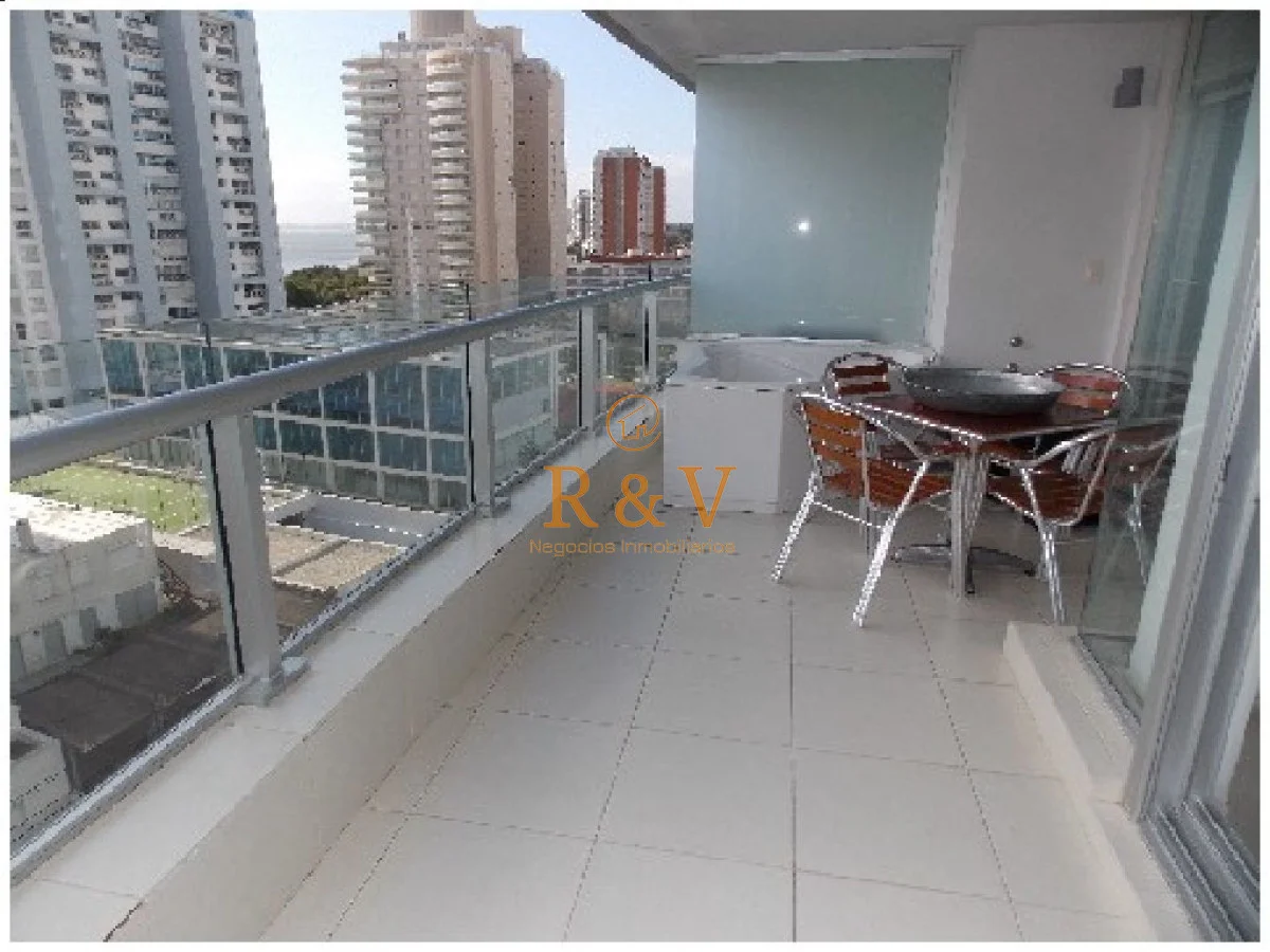 Espacioso living-comedor integrado al balcón terraza con vista panorámica y una personalizada mini-piscina.