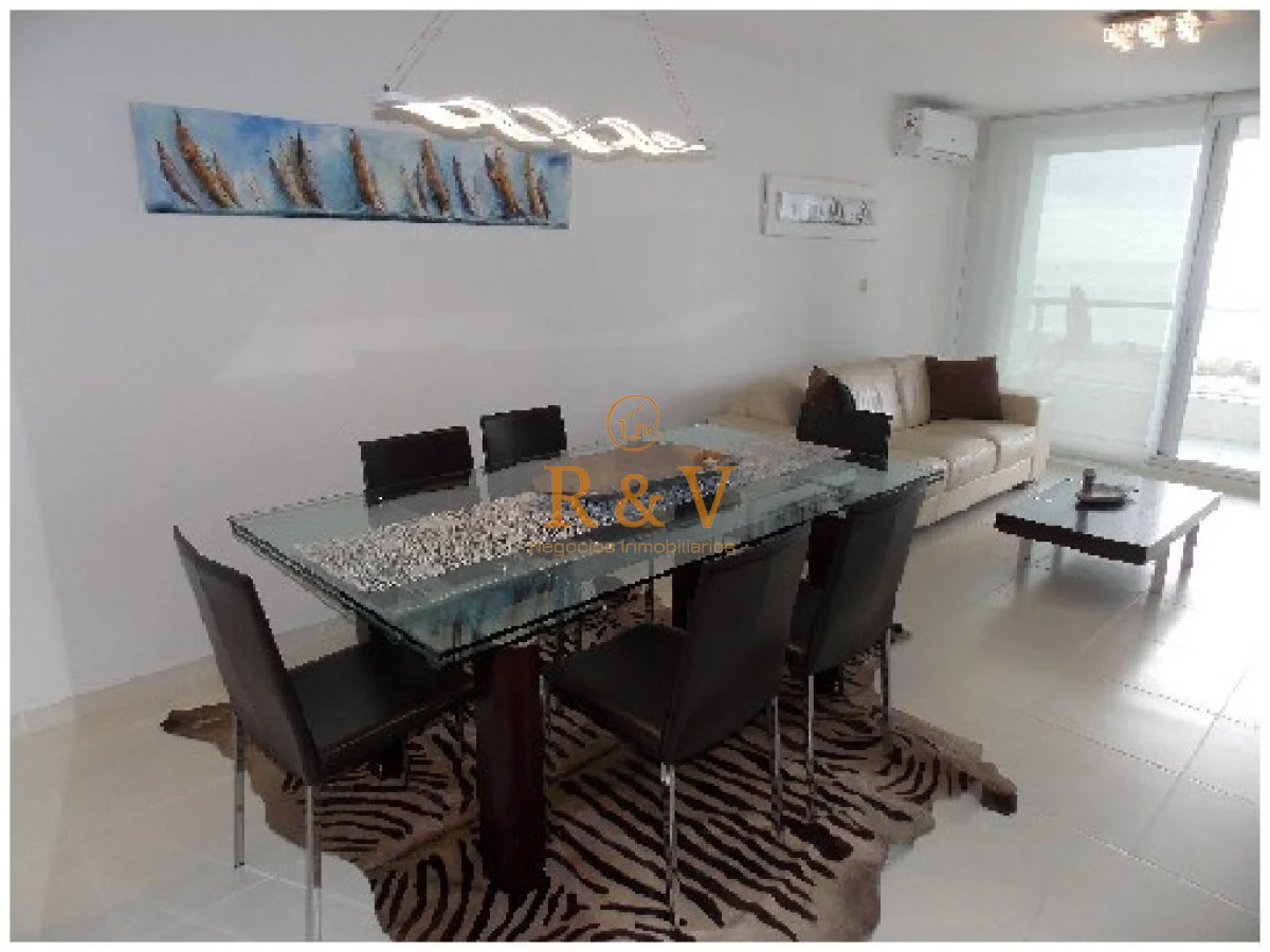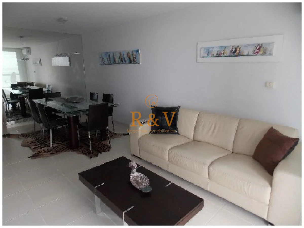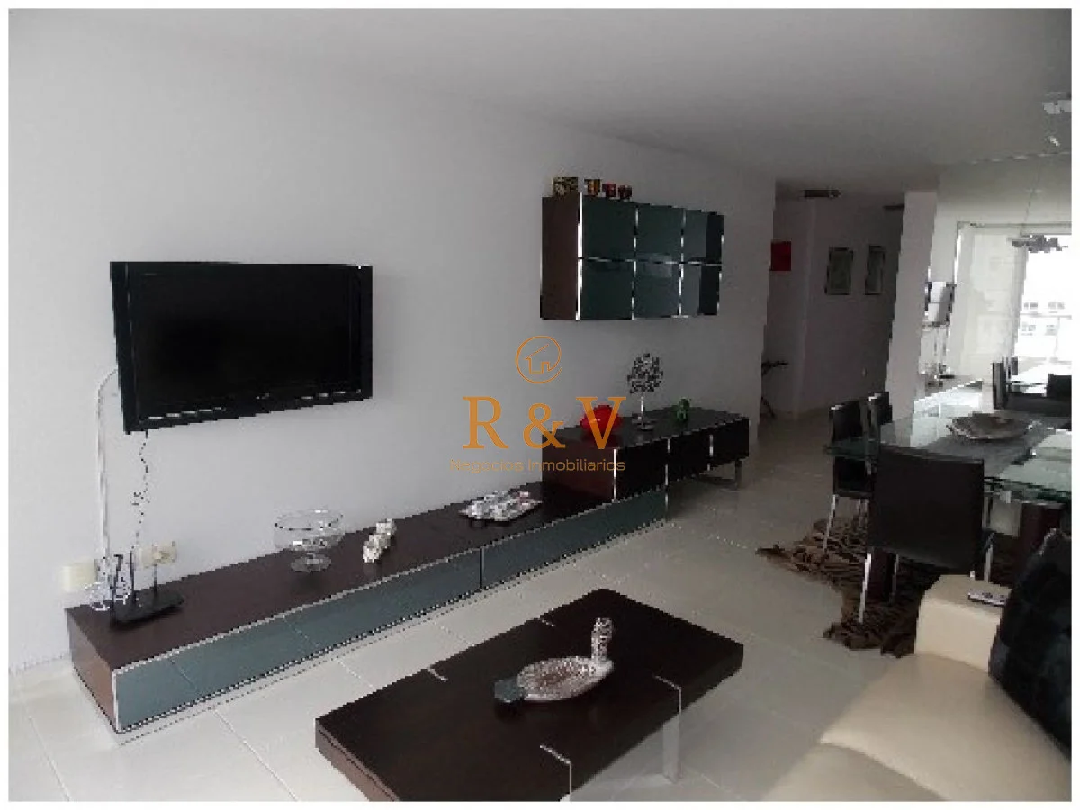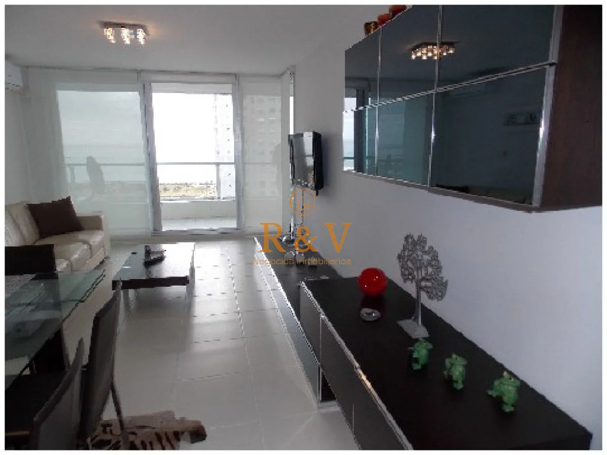 Espacioso living-comedor integrado al balcón terraza con vista panorámica y una personalizada mini-piscina.
