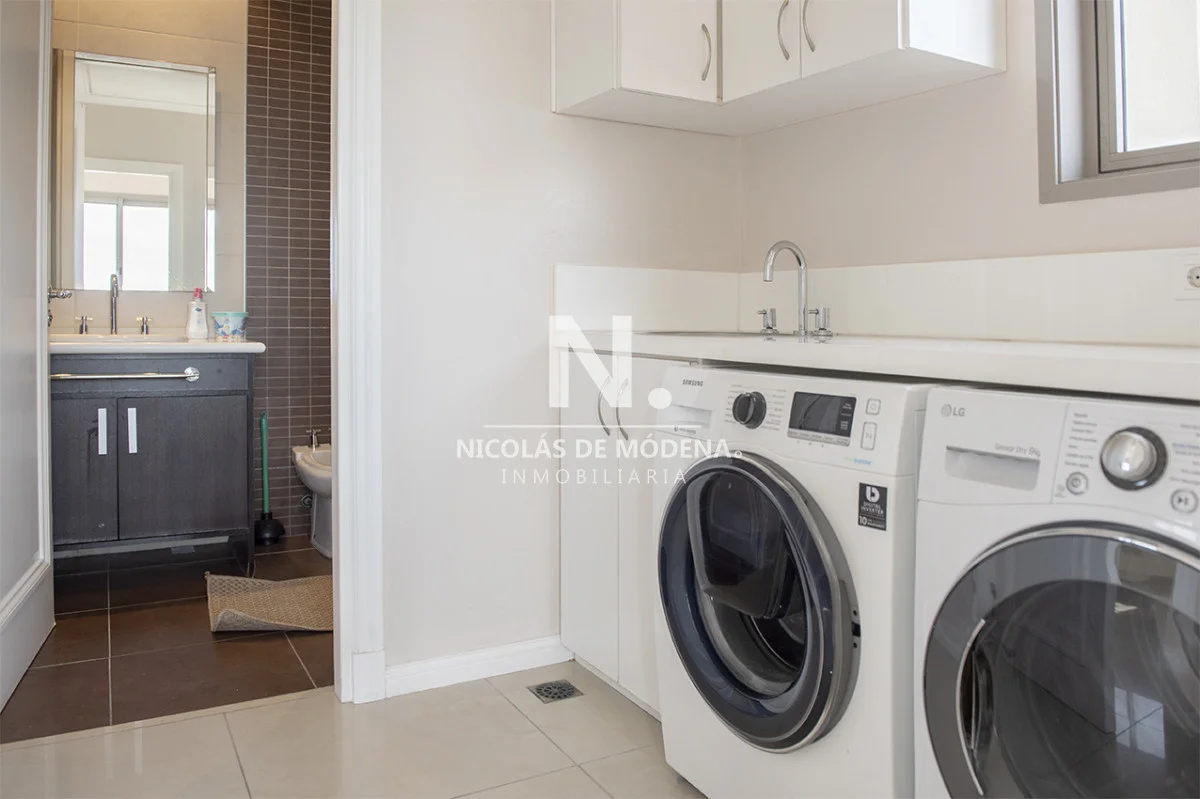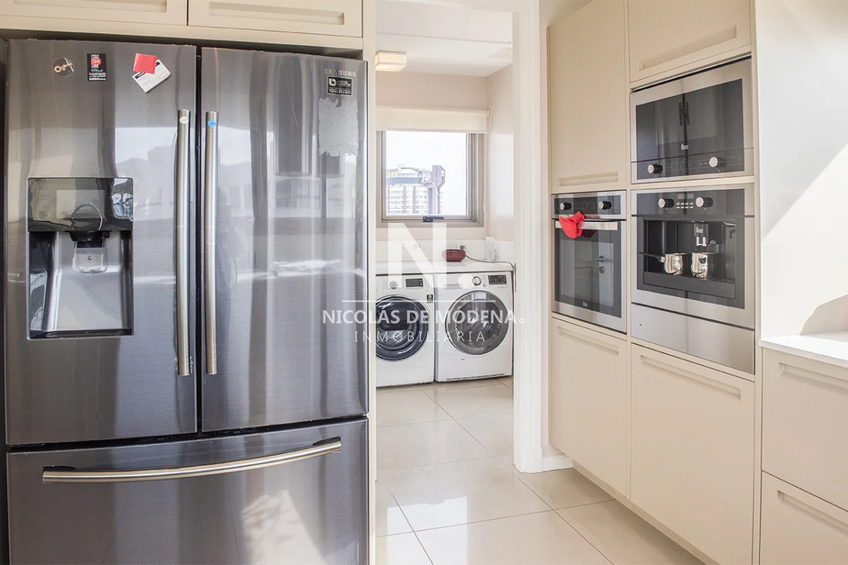 Una cocina definida de estilo americano y súper equipada, que se conecta directamente con un práctico lavadero.