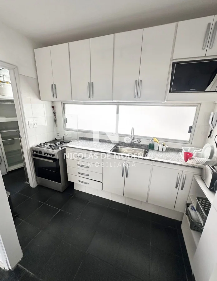 En cuanto al equipamiento, la unidad incluye anafe, microondas, heladera con freezer, horno, aire acondicionado, ventiladores de techo, TV, placares tanto en dormitorios como en la cocina, bidet y termotanque, asegurando funcionalidad y confort en cada detalle.