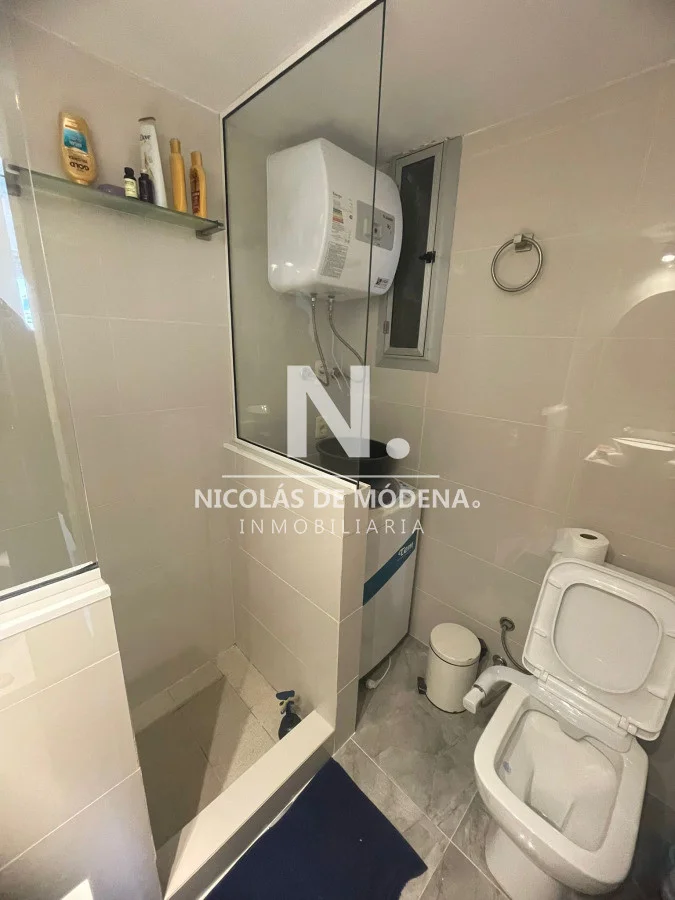 El dormitorio dispone de placard, ofreciendo un espacio de guardado organizado, mientras que la cocina también cuenta con placares que maximizan la comodidad. Entre su equipamiento se destacan anafe, horno, microondas, heladera con freezer, aire acondicionado, TV y baño completo con bidet, garantizando practicidad y confort.