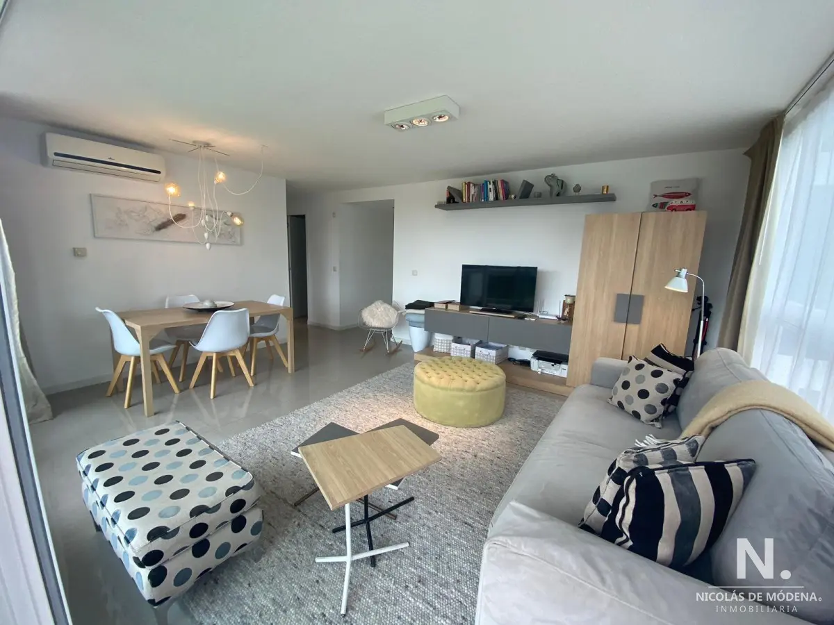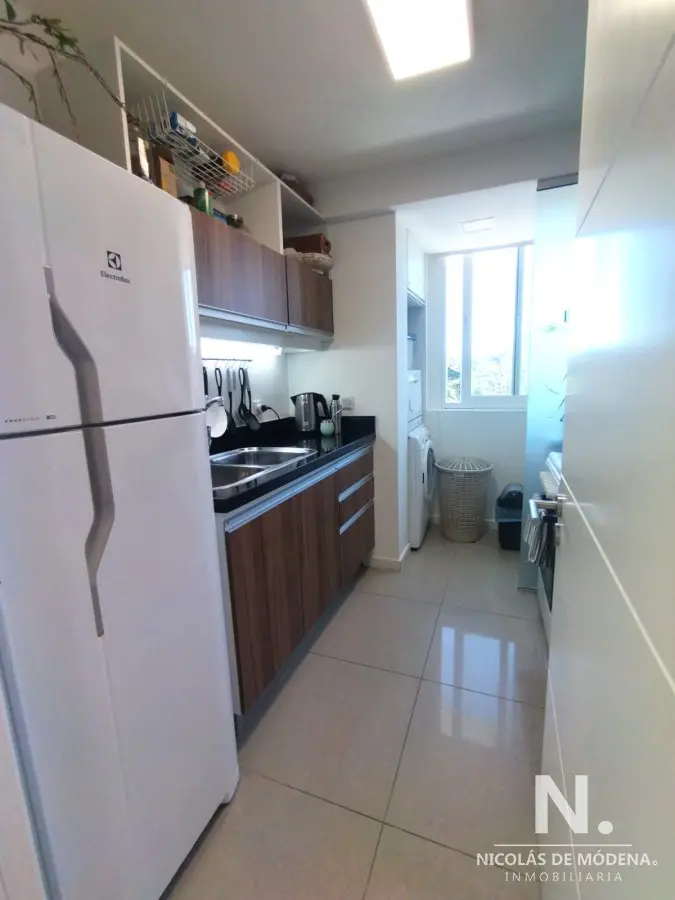 La distribución interna del apartamento incluye una cocina definida, un living y un comedor, creando un espacio acogedor y funcional. La cocina está completamente equipada con anafe, lavarropas, heladera con freezer, horno y campana, además, cuenta con un lavadero, lo cual es una comodidad adicional. El equipamiento del apartamento incluye aire acondicionado y televisión, asegurando un ambiente confortable y entretenido.