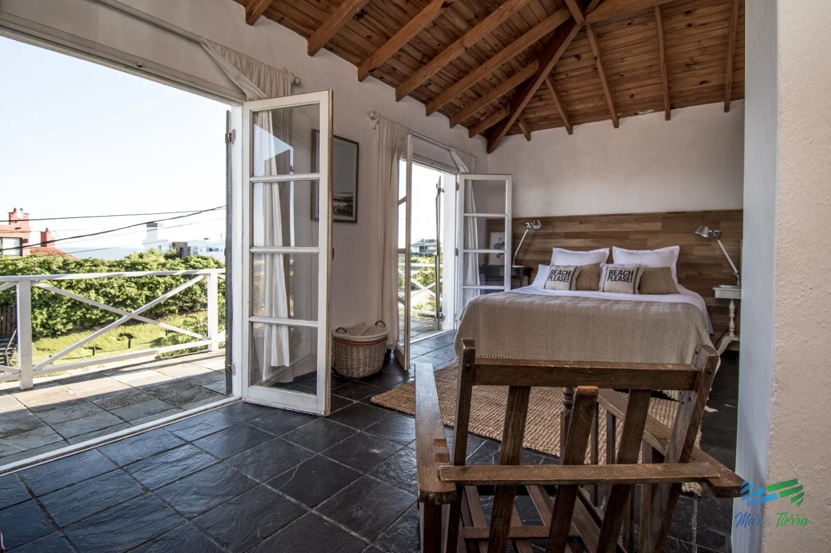Distribuida en dos cómodas plantas. Ubicándose en la primera: living comedor amplio y luminoso al frente con salida al porche de entrada y vista al mar, toilette de visitas, cocina definida con acceso al jardín y dormitorio de servicio con baño. En planta alta se encuentran tres cómodos dormitorios, dos baños completos, el principal en suite con salida al balcón y vista a la playa.