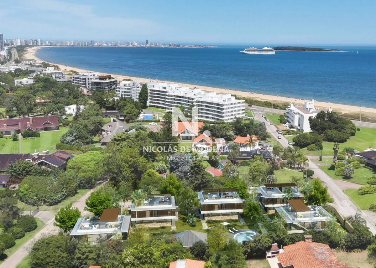 Se presenta una residencia de notable distinción, estratégicamente ubicada a solo 150 metros de la serena playa Mansa, en Punta del Este. Esta propiedad, concebida para brindar un estilo de vida de confort y elegancia, ofrece espacios generosos y una distribución que maximiza el disfrute de su privilegiado entorno costero.