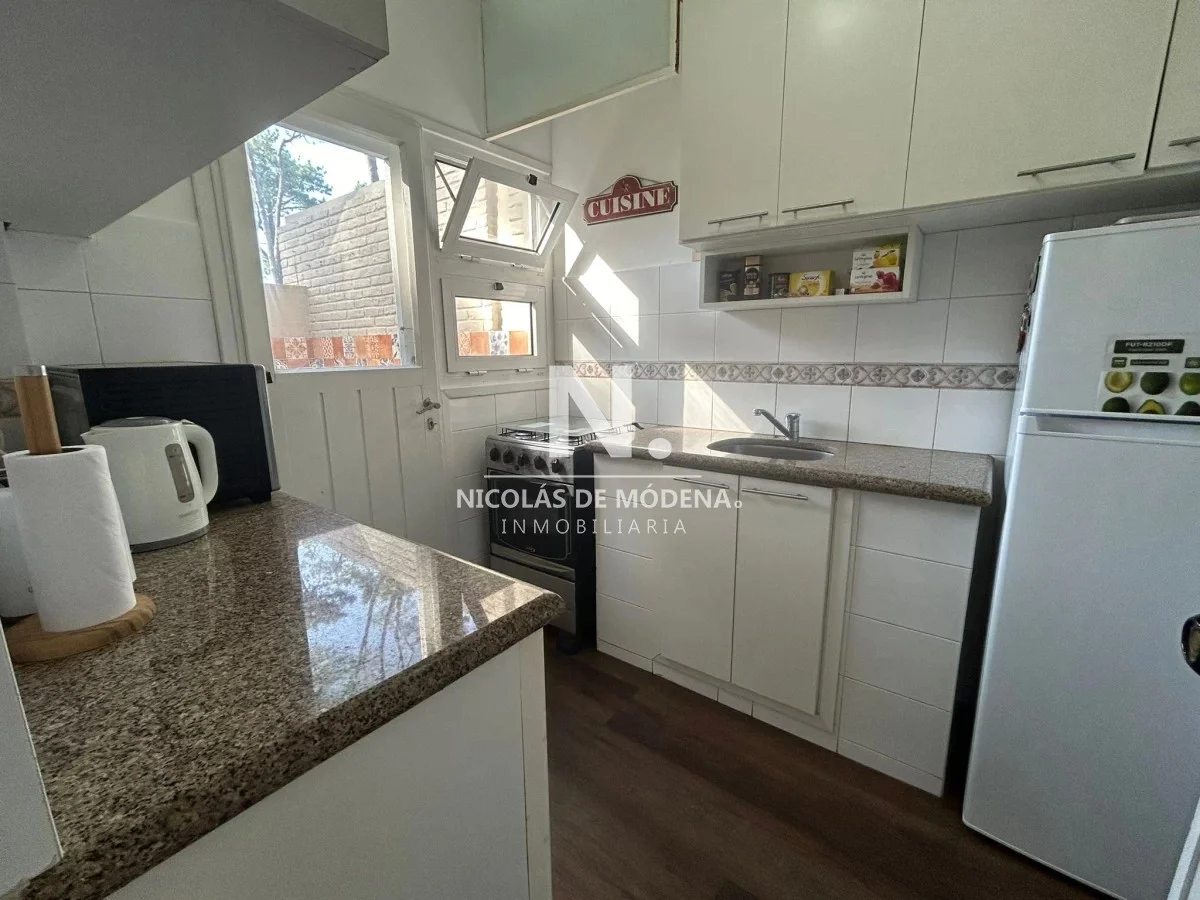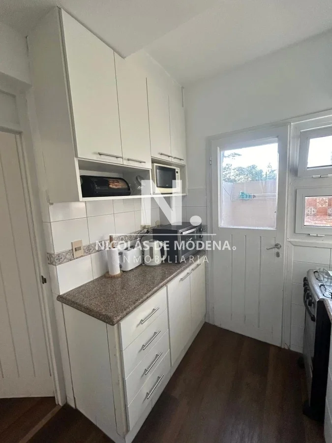 La cocina está definida y completamente equipada con un anafe, microondas, heladera con freezer y tostadora, lo que permite a los huéspedes preparar sus comidas favoritas con facilidad. El área de estar incluye un luminoso living comedor, creando un espacio perfecto para relajarse y socializar.