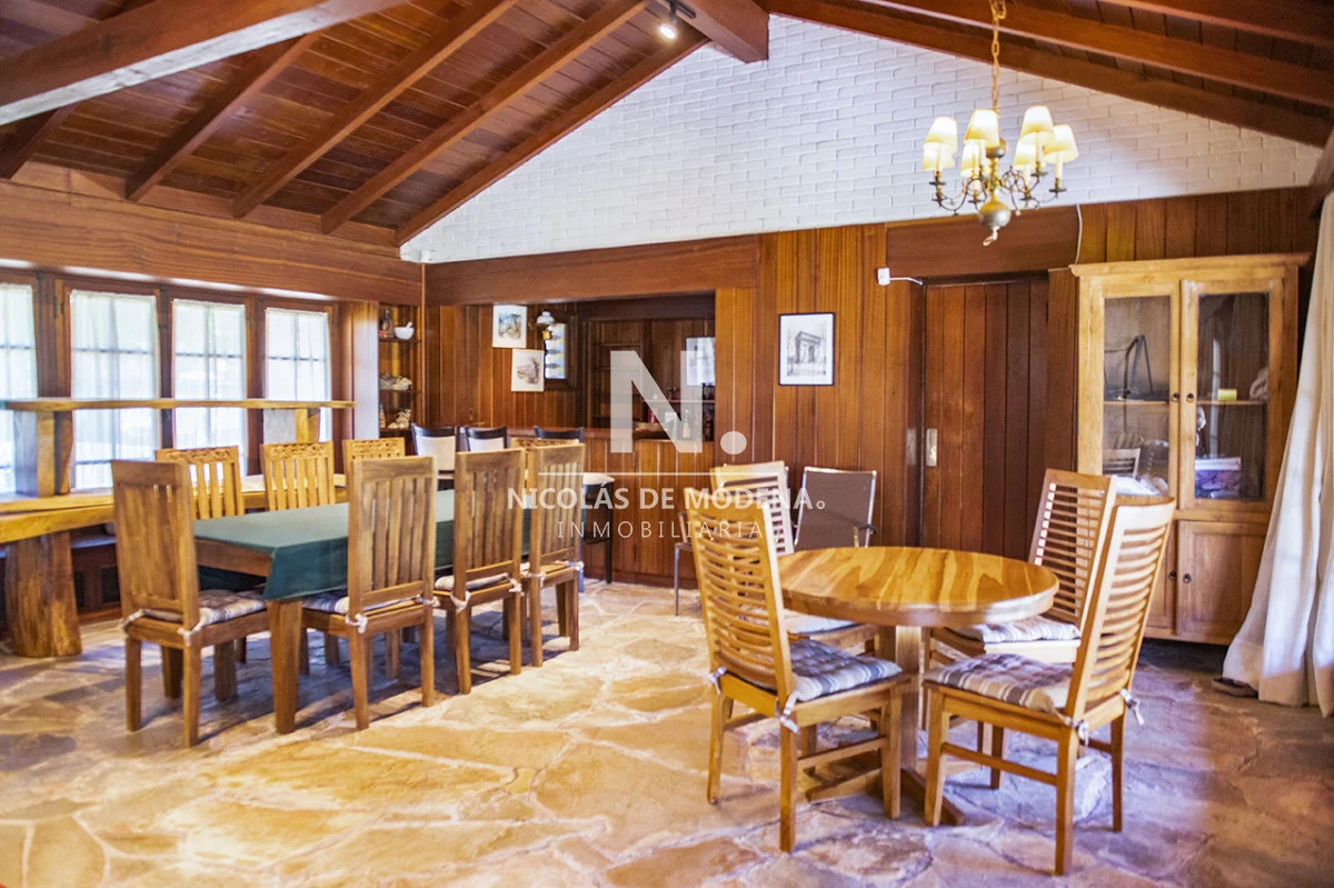 La entrada principal da paso a un espacioso living-comedor-bar ideal para el entretenimiento y la convivencia. Los espacios interiores incluyen una suite principal con chimenea y otra suite adicional, además de dos dormitorios con baños independientes, un acogedor dormitorio de huéspedes con acceso a una terraza privada y un estar-dormitorio versátil. La propiedad también cuenta con un garage cerrado para dos autos, brindando seguridad y comodidad.