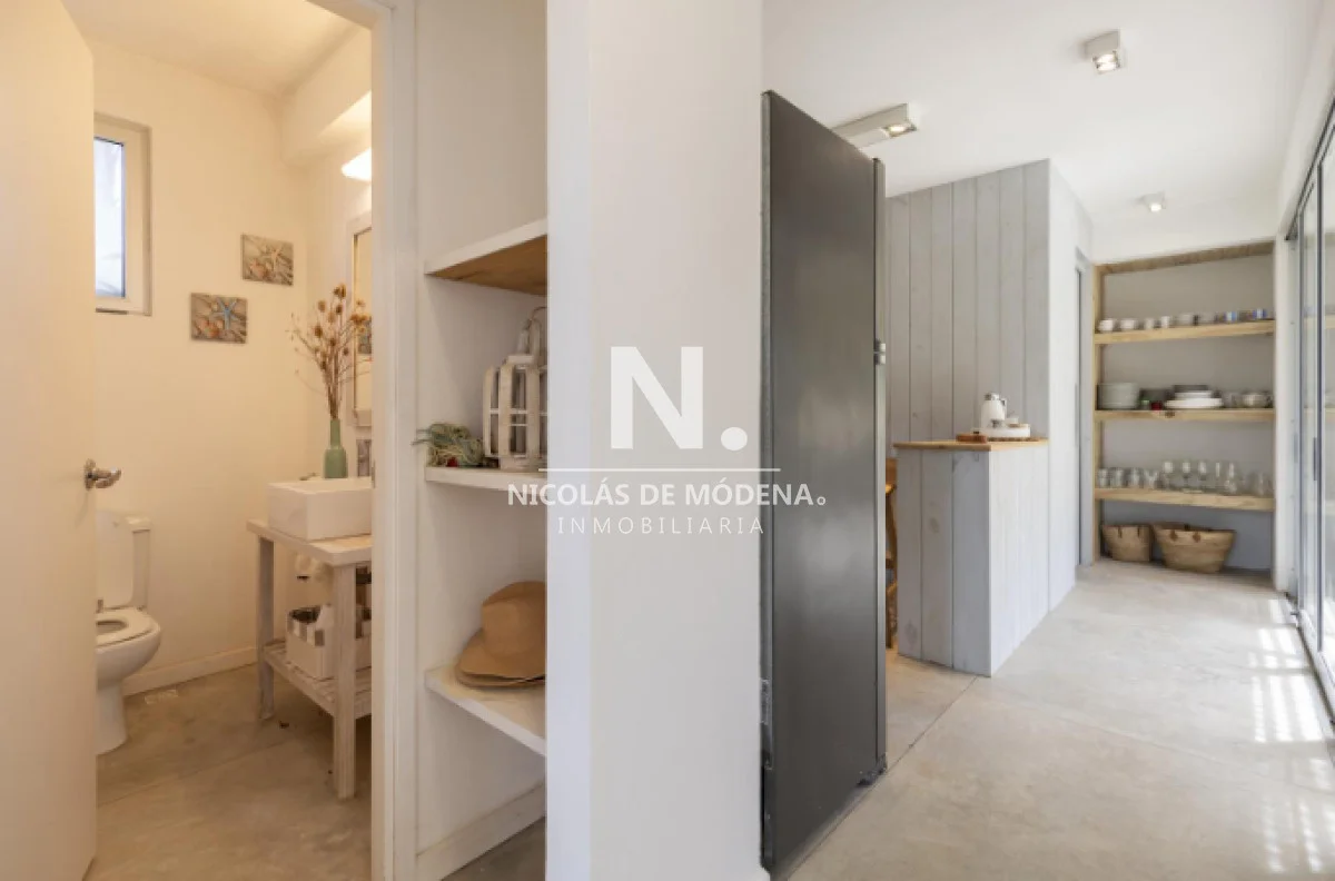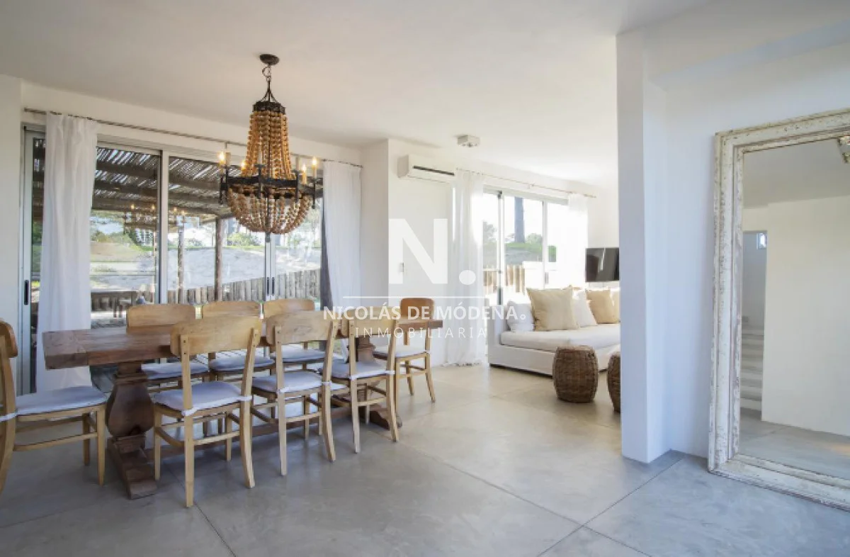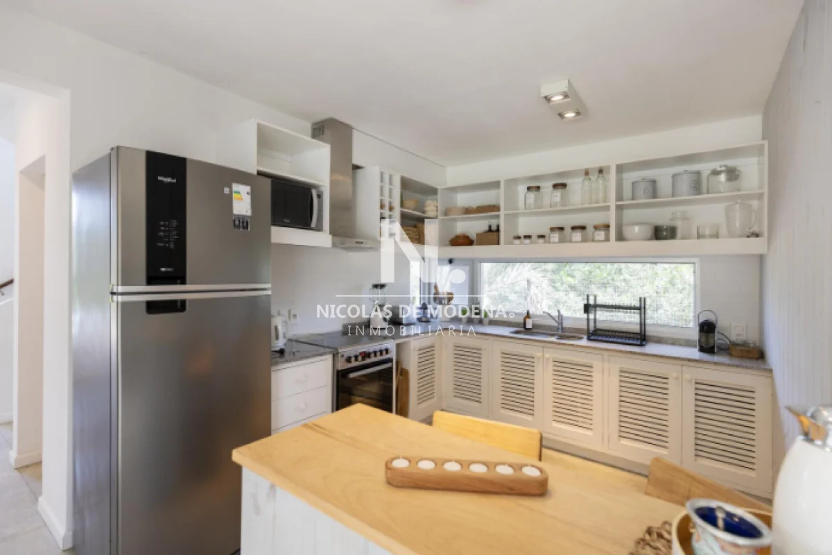 En la planta baja se integra un amplio living comedor de concepto abierto, que se comunica de manera fluida con una cocina cómoda y moderna, equipada con mobiliario de alta gama y electrodomésticos de primer nivel. Este ambiente se complementa con un toilette, diseñado para atender las necesidades de visitas, y con una dependencia de servicio contigua a la cocina, que optimiza la operatividad diaria de la casa.