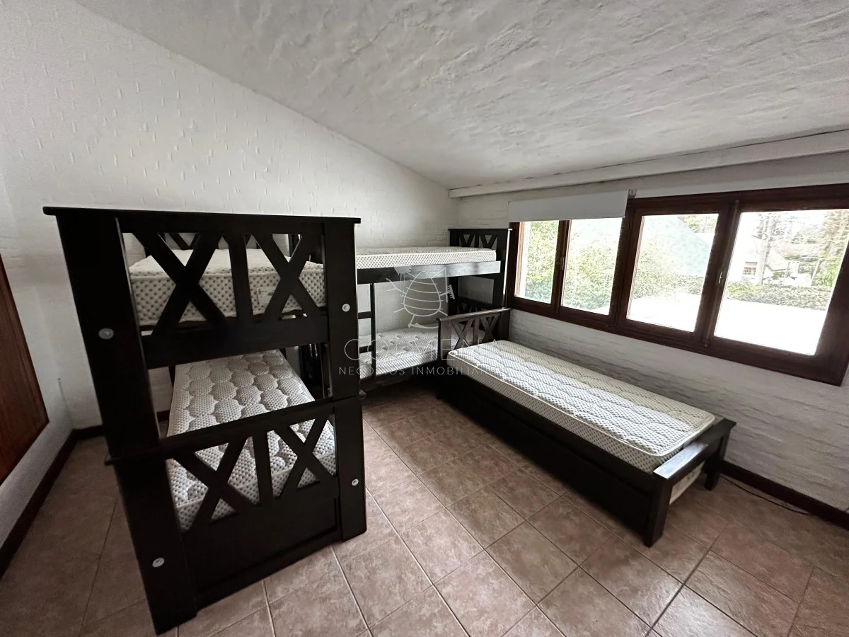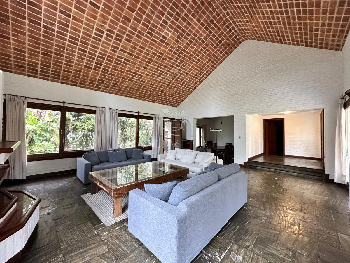 La casa cuenta con 6 dormitorios, de los cuales 5 son en suite, asegurando comodidad y privacidad para cada integrante de la familia o invitados. En total dispone de 5 baños completos, distribuidos de manera funcional. El living y comedor principal son amplios, luminosos y se integran a una cálida área social, ideal para compartir momentos únicos.