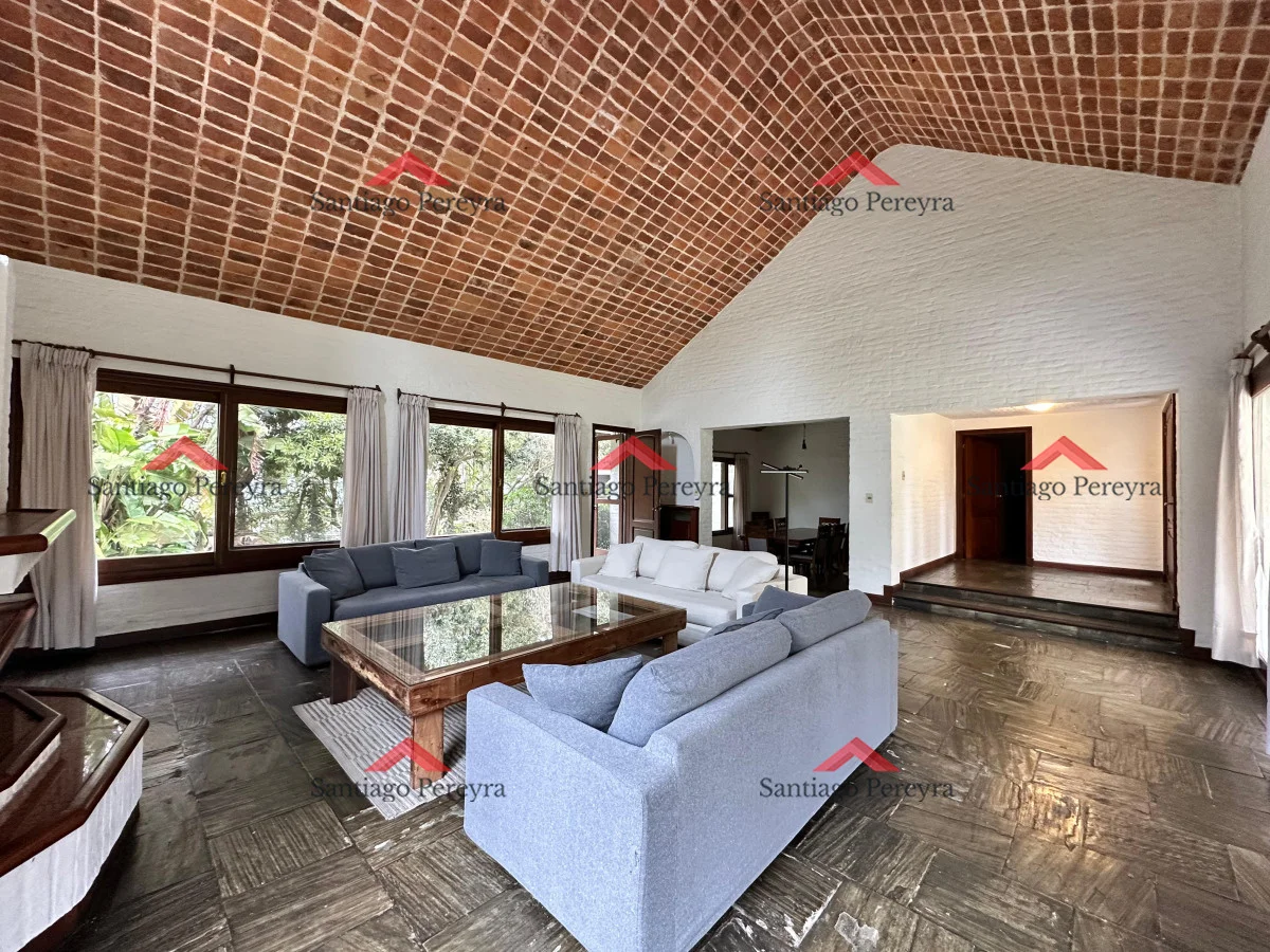La casa cuenta con 6 dormitorios, de los cuales 5 son en suite, asegurando comodidad y privacidad para cada integrante de la familia o invitados. En total dispone de 5 baños completos, distribuidos de manera funcional. El living y comedor principal son amplios, luminosos y se integran a una cálida área social, ideal para compartir momentos únicos.