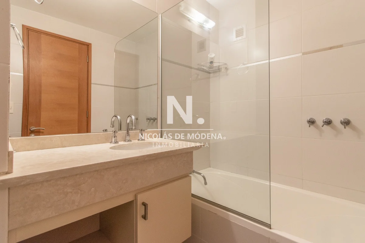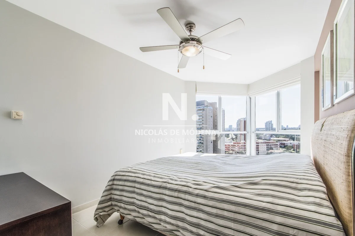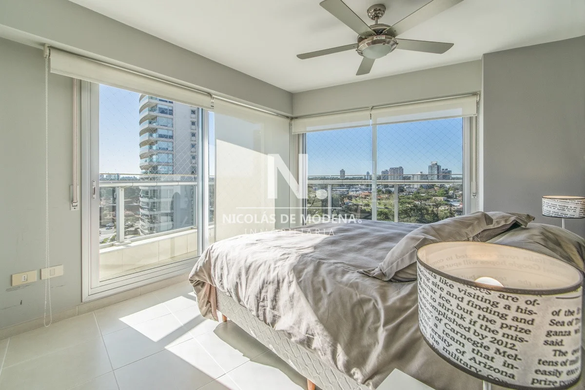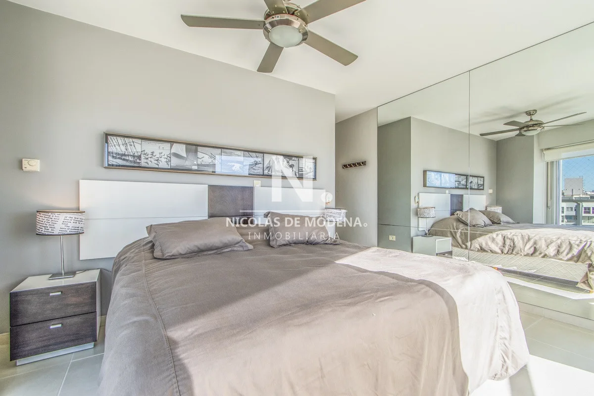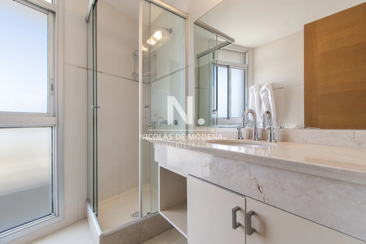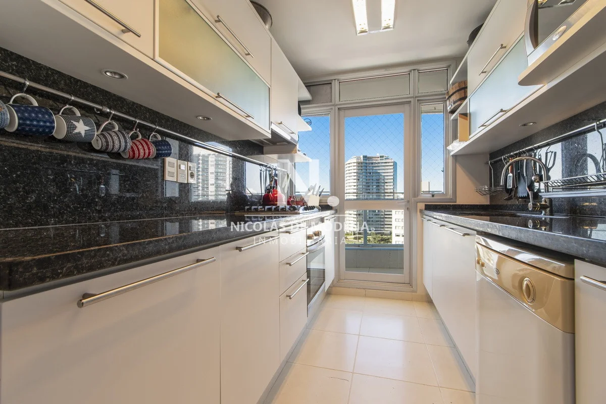 La unidad cuenta con 3 dormitorios, cada uno con su propio baño, lo que significa que todas las habitaciones son suites. En cuanto a la distribución interna, la cocina es completa y está equipada con anafe, microondas, lavavajillas, heladera con freezer y horno, lo que facilita la preparación de comidas. Además, el apartamento cuenta con un amplio living y comedor, brindando un entorno cómodo y espacioso para la convivencia.