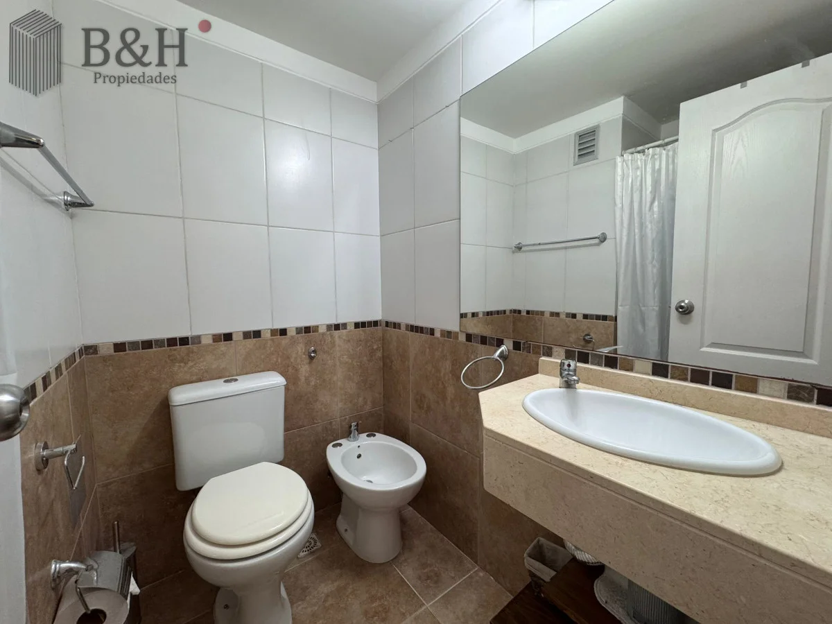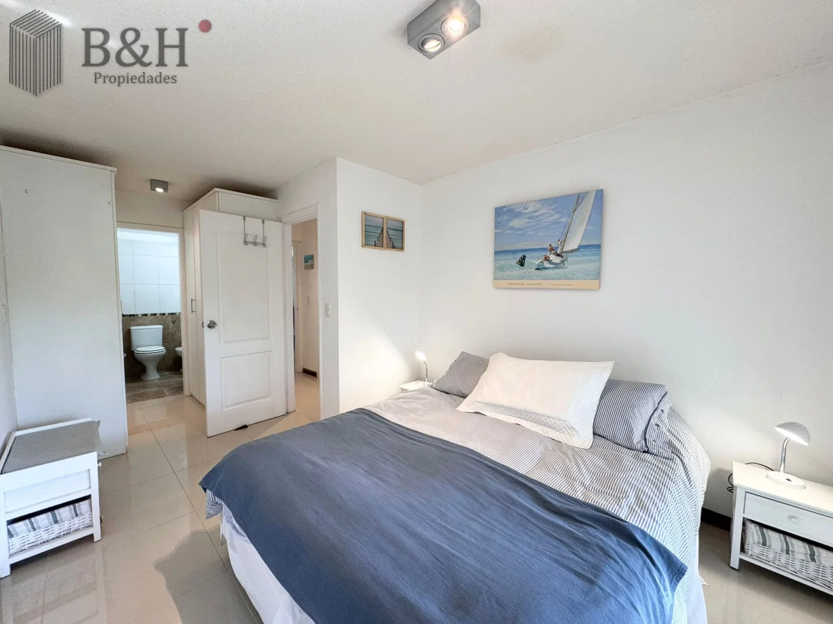 Apartamento de 2 dormitorios y 2 baños, uno de ellos en suite. Living comedor con cocina integrada y barra, lavadero, terraza al frente con parrillero y contra frente con baulera, cochera.