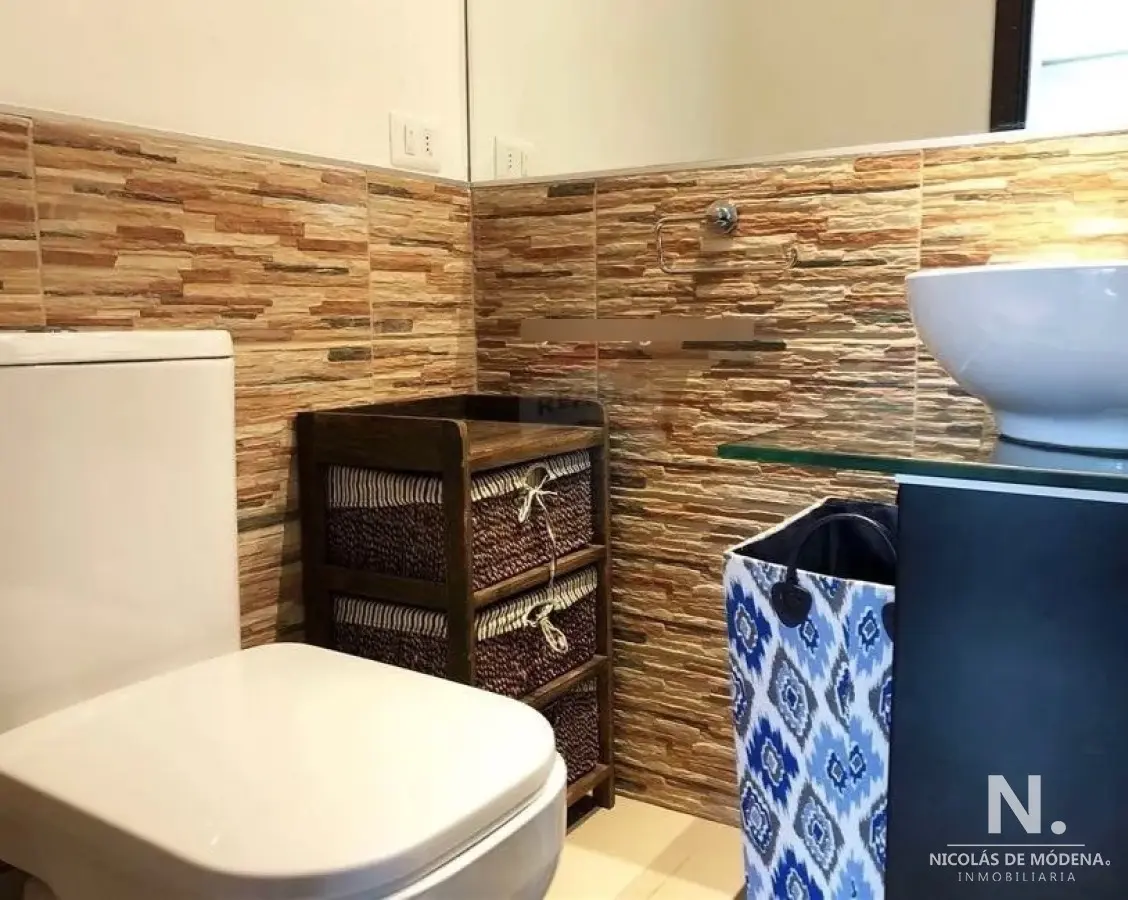 La cocina está integrada al espacio de estar, lo que facilita la interacción entre los huéspedes mientras preparan comidas. Está equipada con anafe, microondas, lavavajillas, heladera con freezer y horno, proporcionando todo lo necesario para cocinar y disfrutar de deliciosas comidas durante su estadía. El área de estar se compone de un amplio living comedor, ideal para relajarse y compartir momentos especiales. El apartamento está equipado con aire acondicionado y televisión para brindar mayor confort a los residentes.