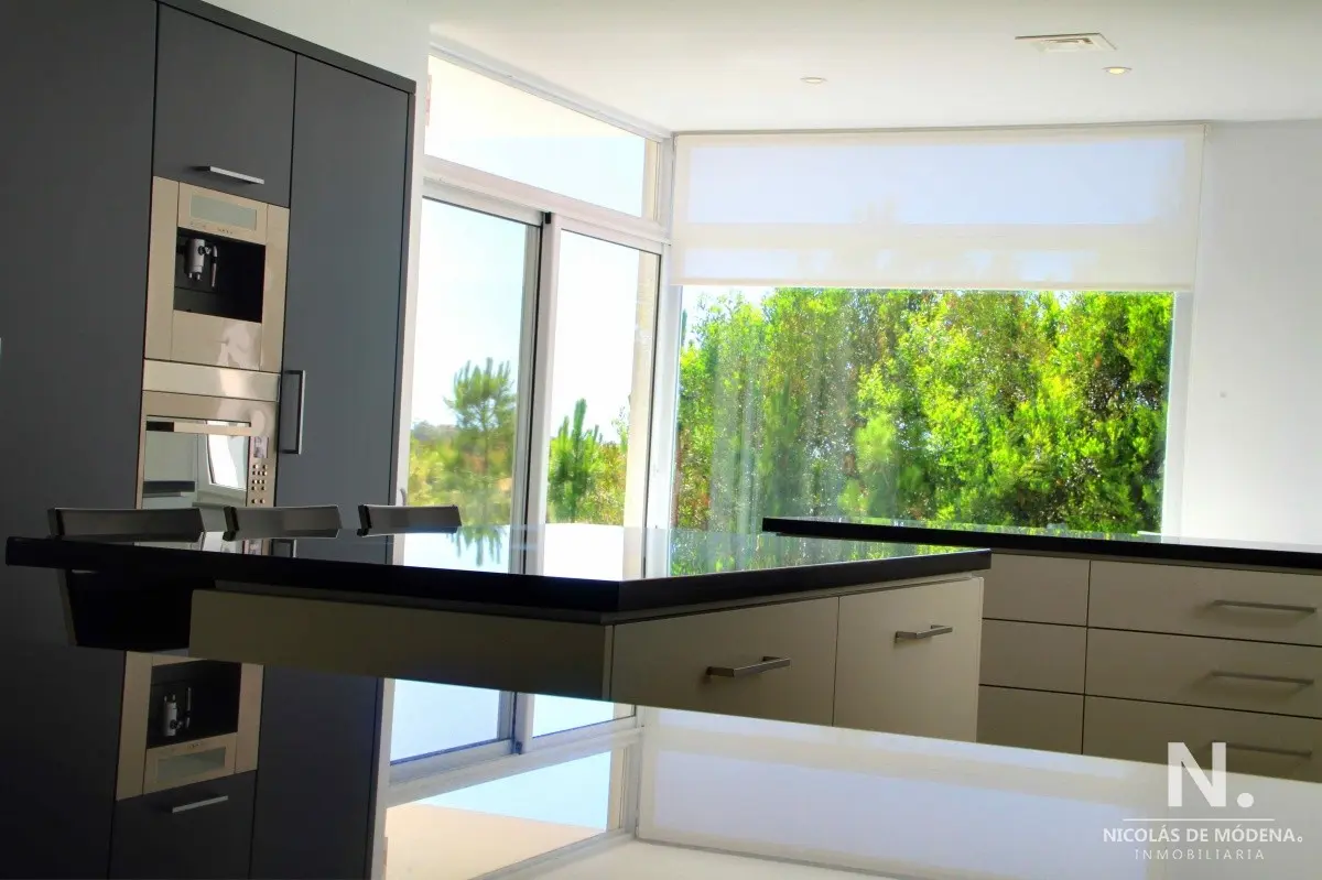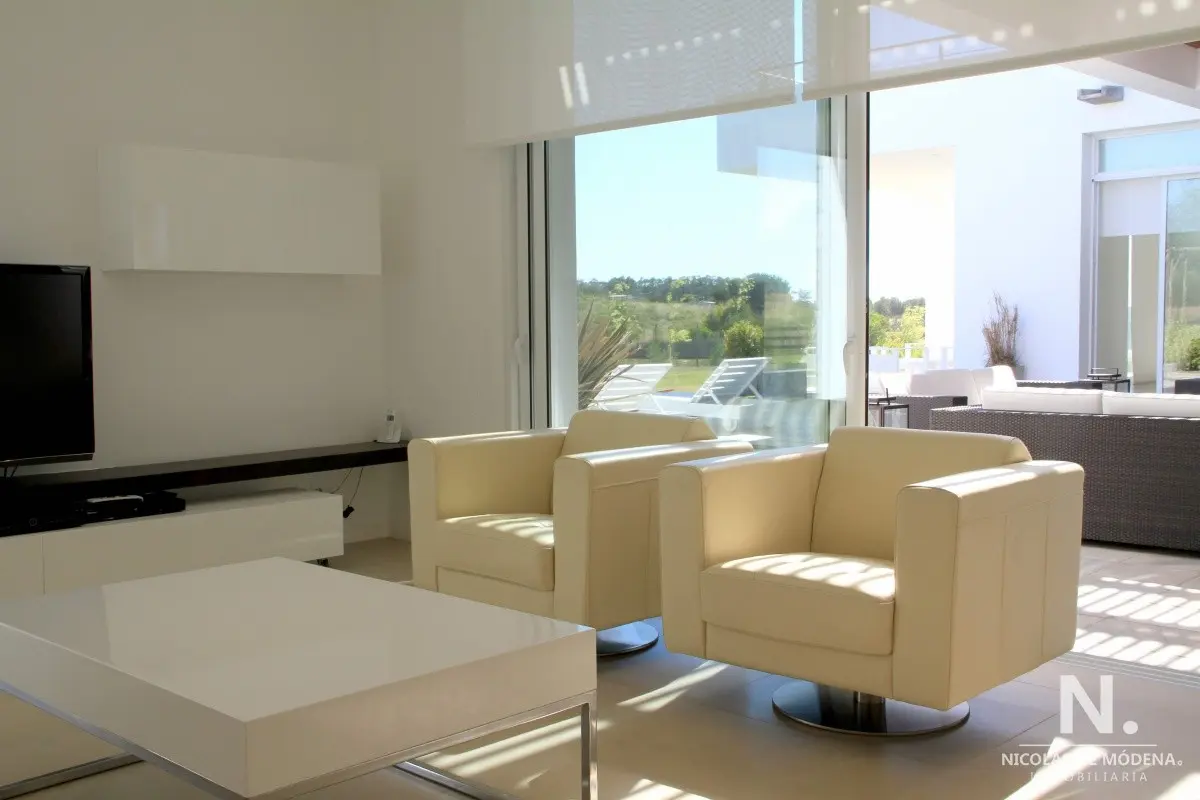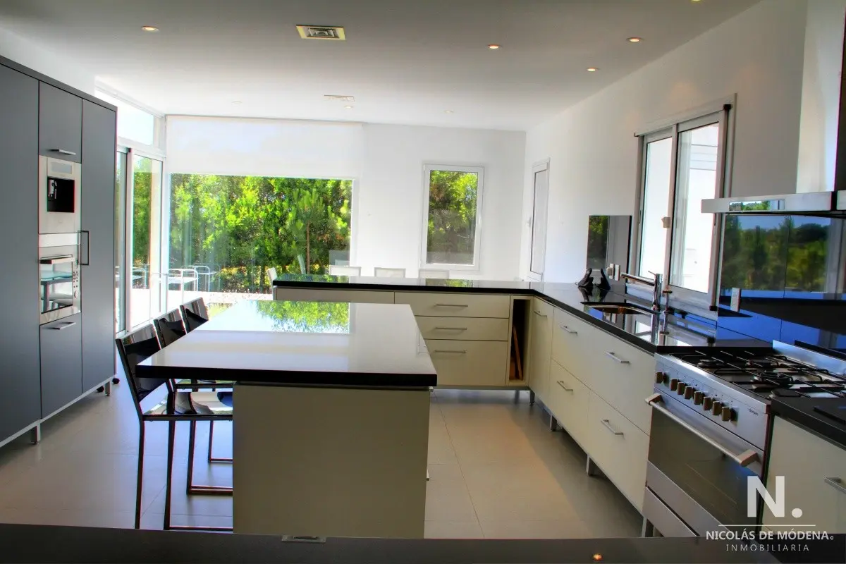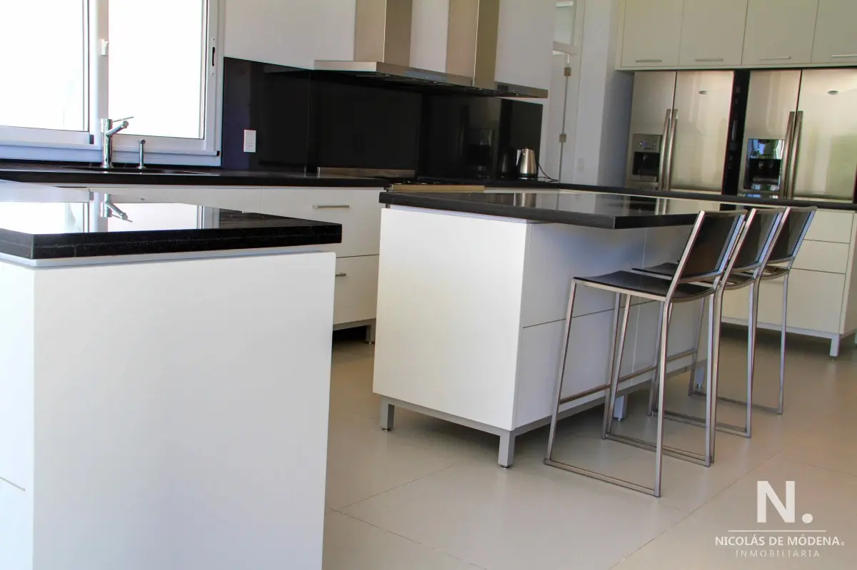 La cocina es amplia y bien equipada con anafe, microondas, heladera con freezer, y horno, brindando todas las comodidades necesarias para la preparación de alimentos. El área de estar se compone de un amplio living y comedor, creando un espacio acogedor para la relajación y la convivencia. Además, la casa está equipada con aire acondicionado y una televisión para garantizar un ambiente cómodo y entretenido.