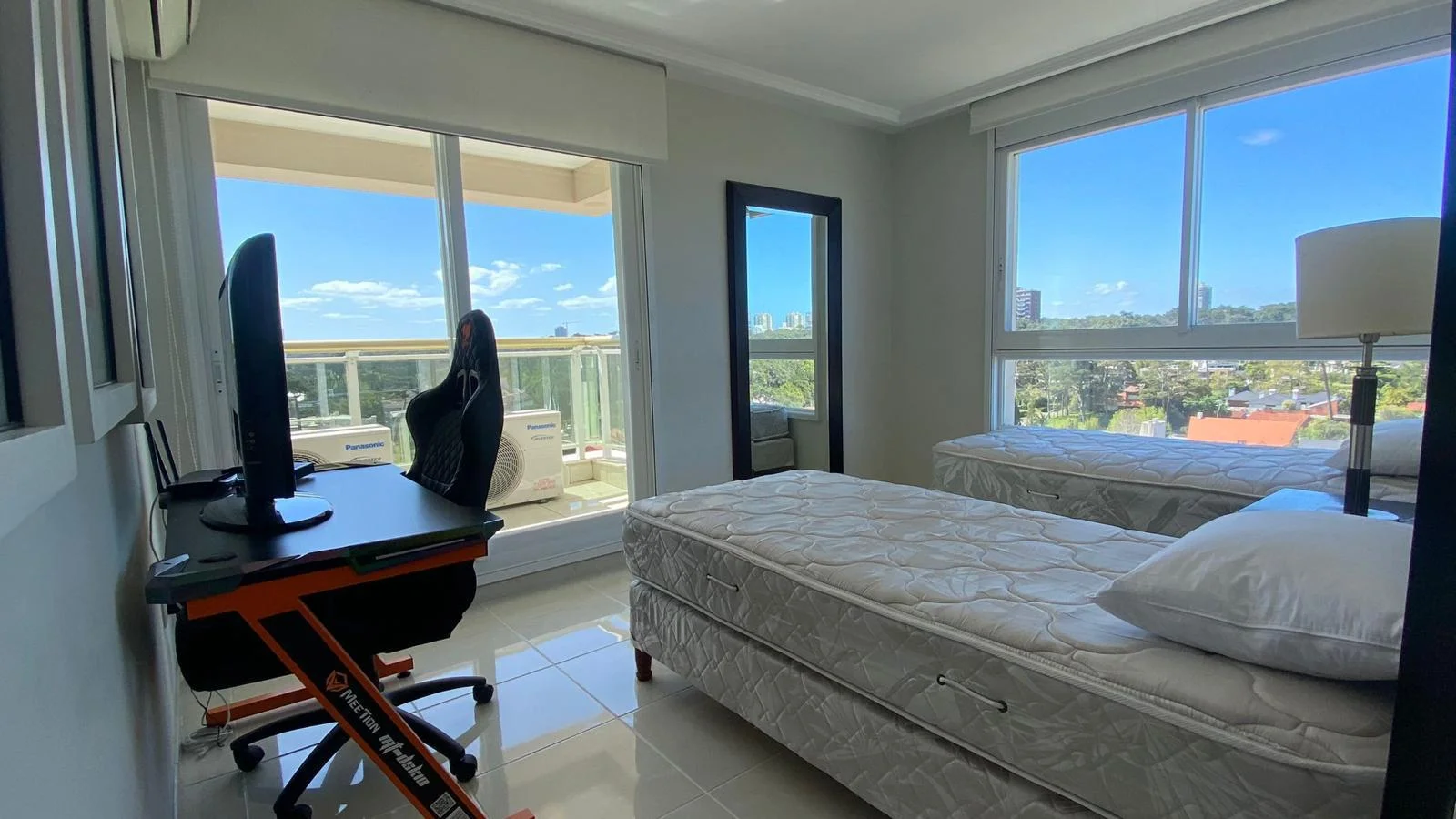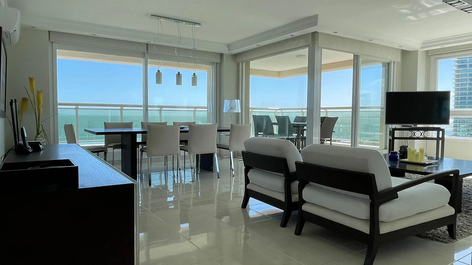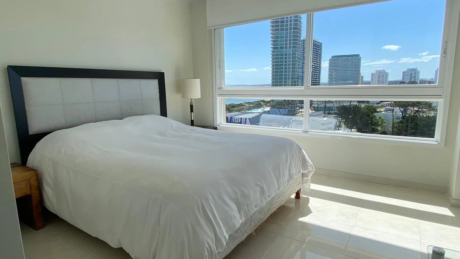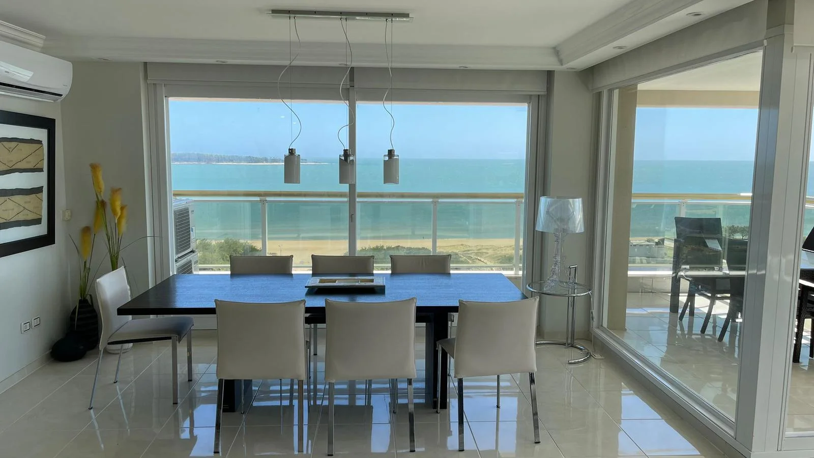 Esquinero frente a la Playa Mansa. Living comedor amplio y luminoso con salida a la terraza. Cocina con terraza lavadero. Toilette. 3 suites, principal al frente con vista al mar.