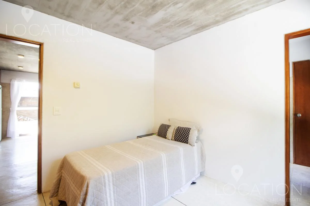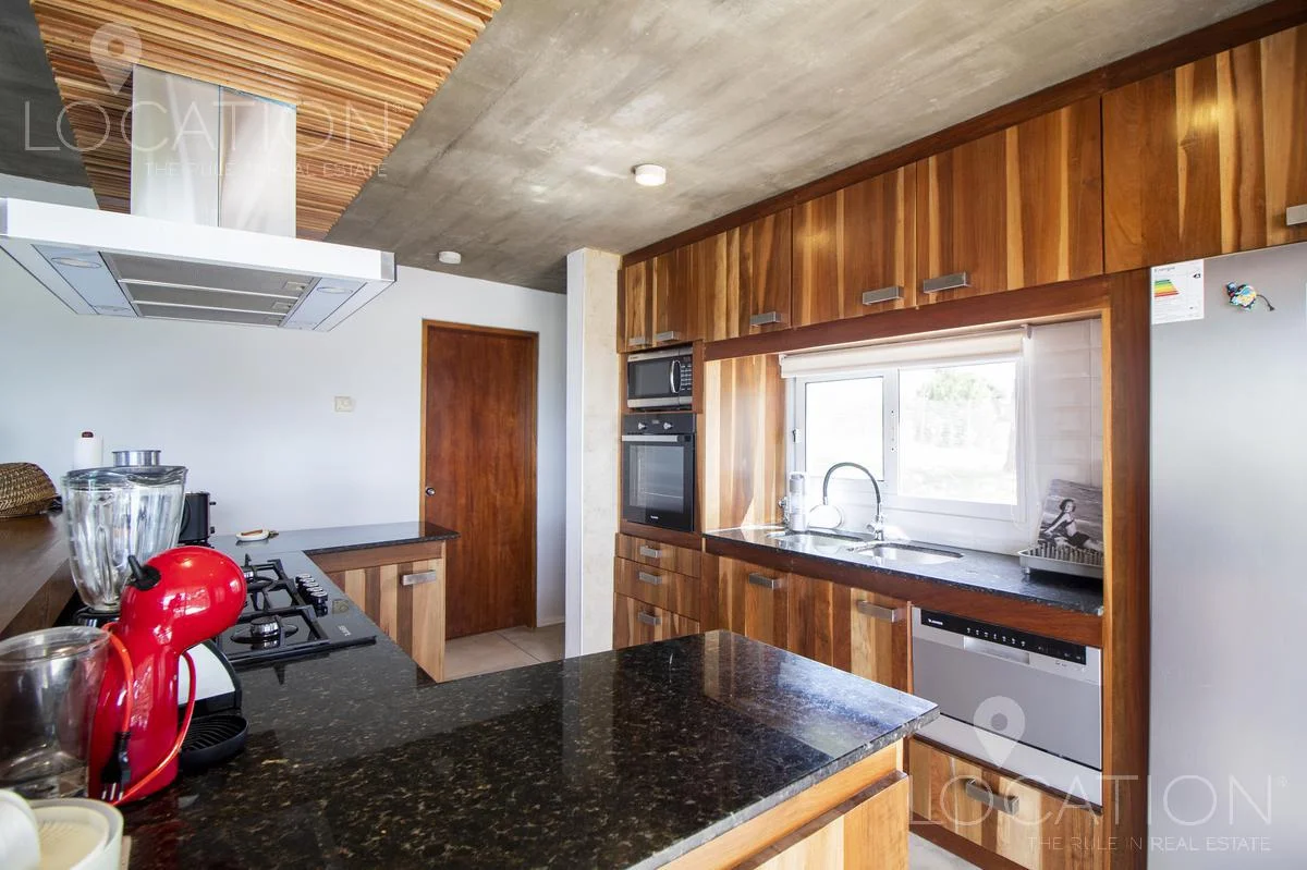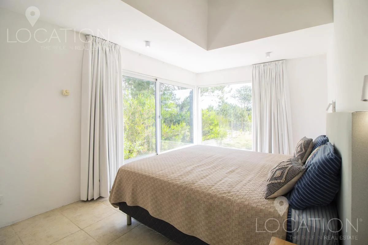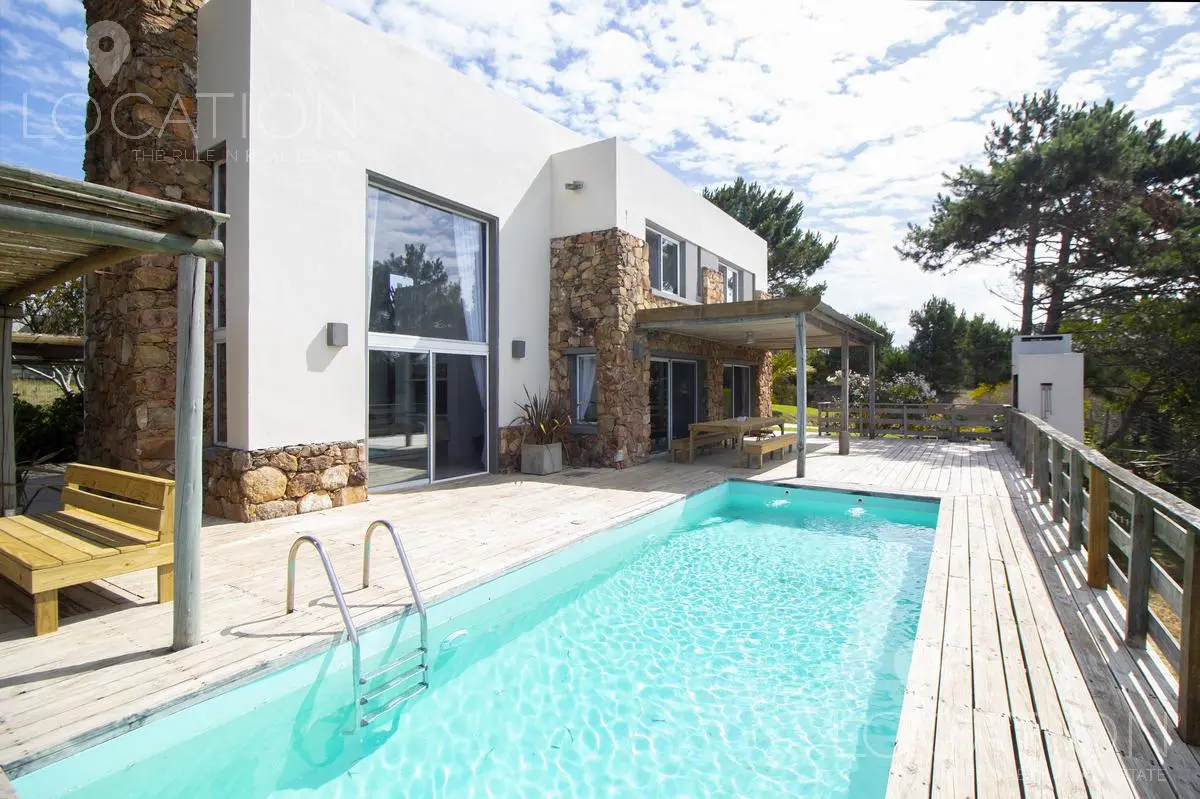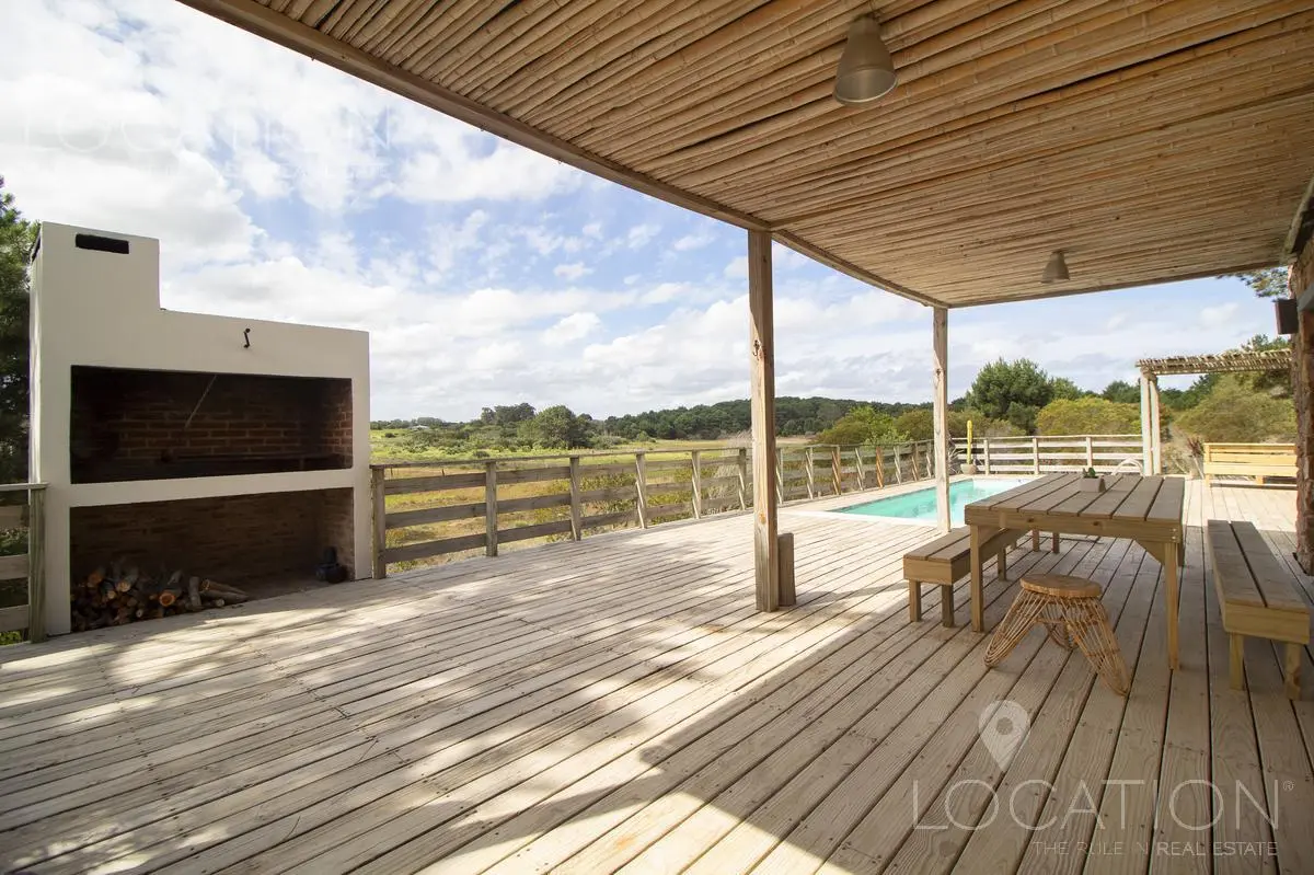 Muy linda casa, rodeada de un entorno natural y de vistas poco conocidas en la zona este de José Ignacio. Posee 3 dormitorios uno de ellos en planta baja, como también el living, comedor y cocina súper equipada. En planta alta, tenemos un escritorio y los restantes dos dormitorios, uno de ellos pertenece a la máster suite, Diseñada en un espacio integrado de dormitorio y amplio toilette con bañera, quedando la ducha y el resto del baño independiente.