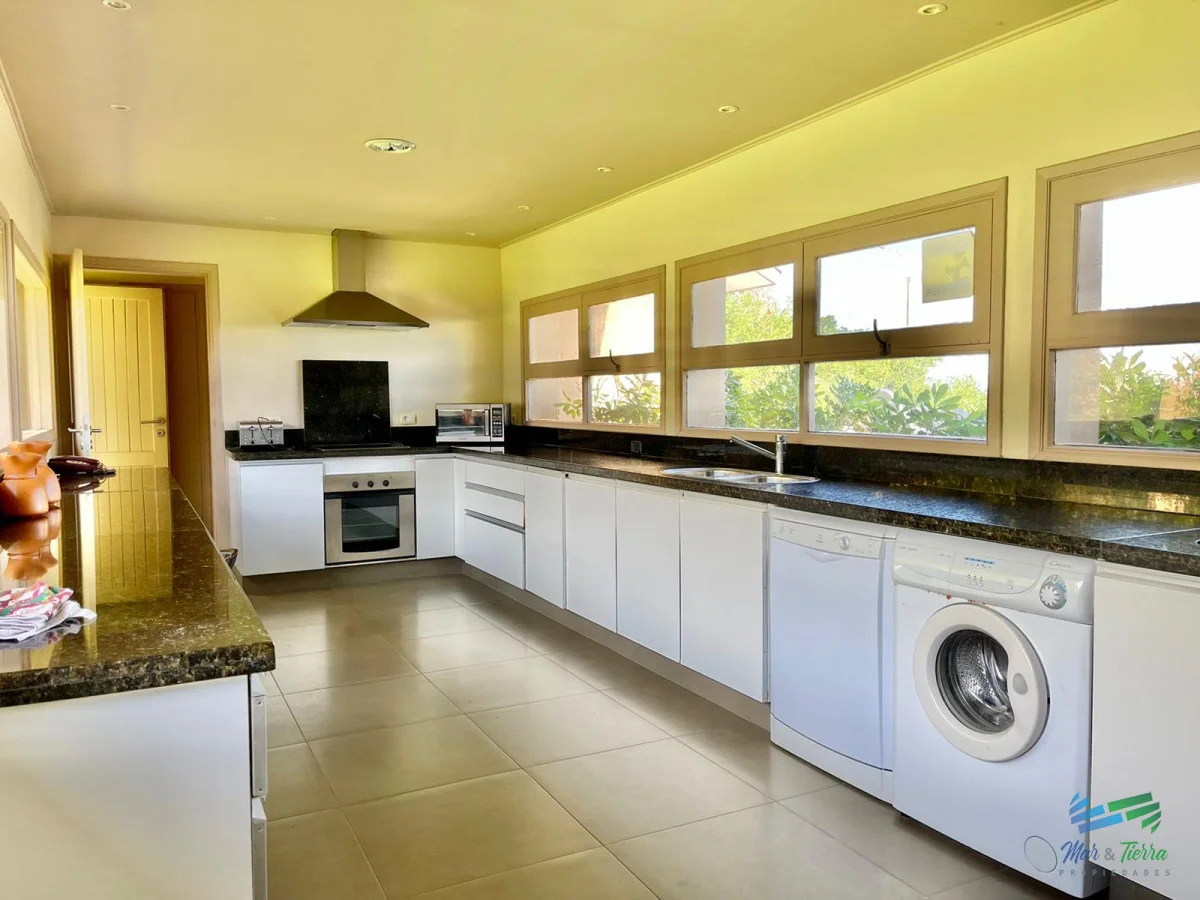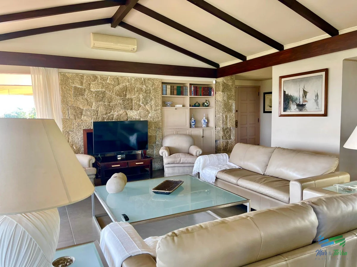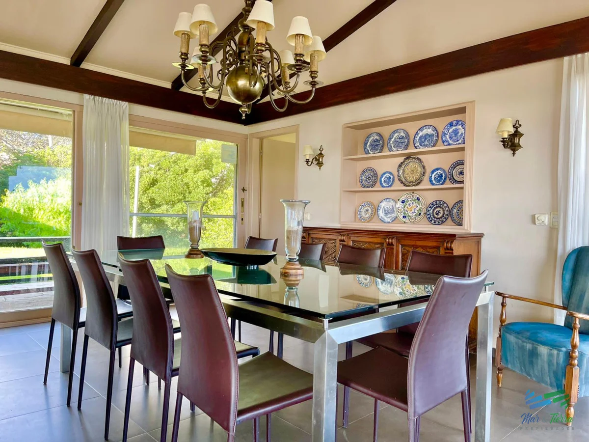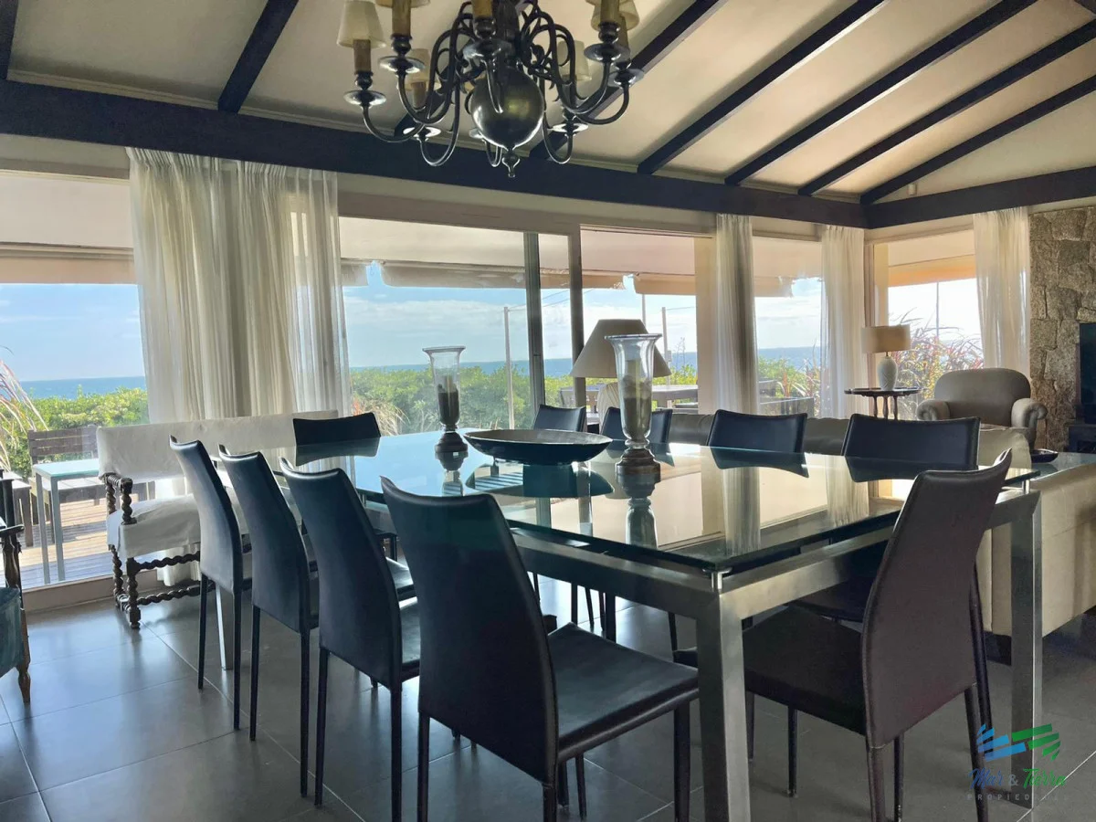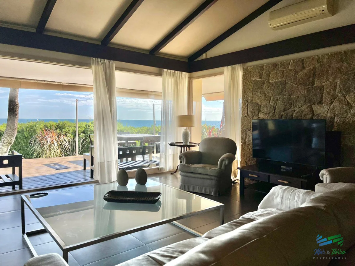 En un lote de más de 1.300 m2 y desarrollada en 384 m2 distribuidos una sola planta, esta espléndida propiedad cuenta con un espacioso living comedor con hogar a leña y grandes ventanales de piso a techo que permiten disfrutar el jardín y la vista al mar desde el interior de la casa.