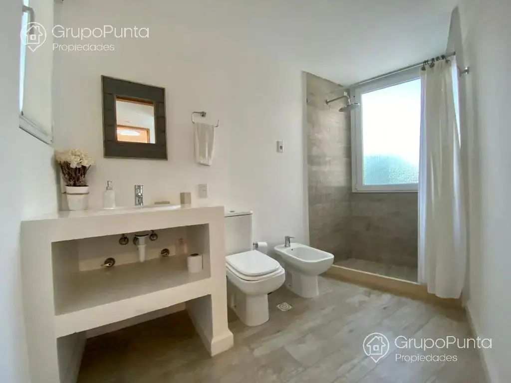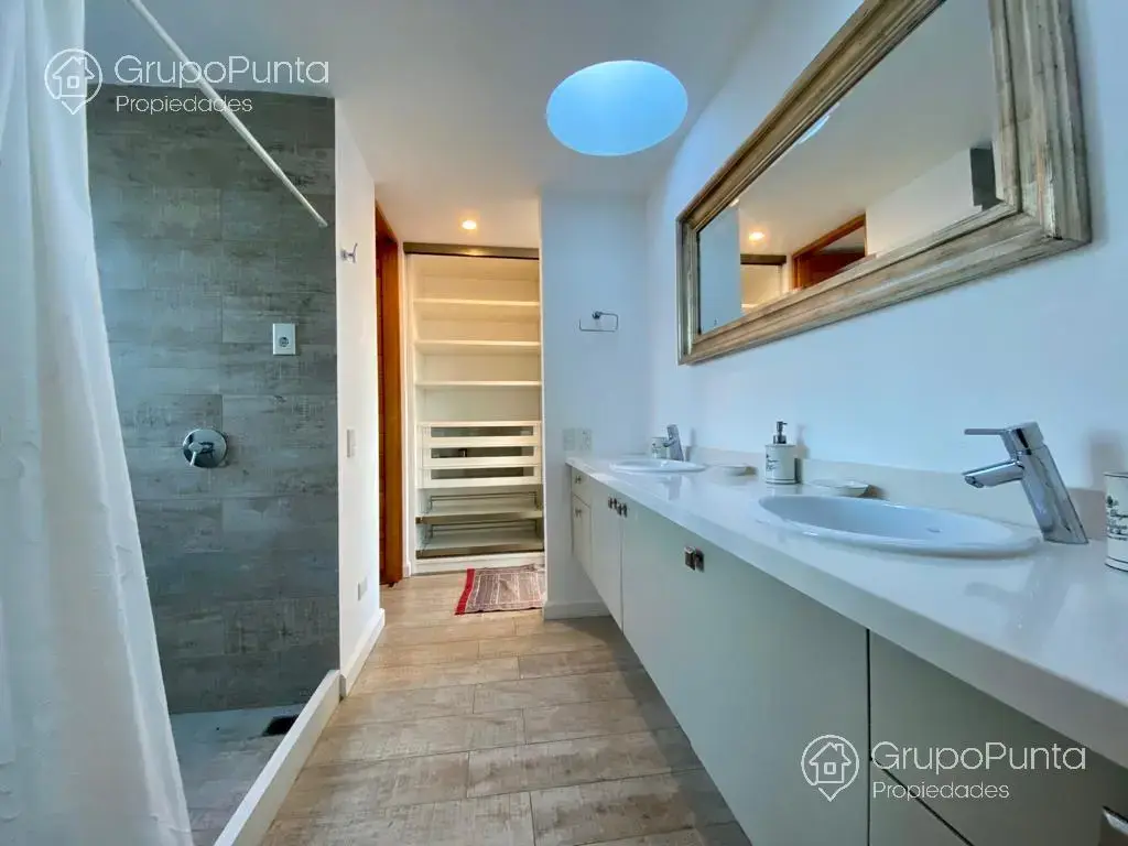 En planta alta: amplio living comedor con cocina integrada . Master Suite con dos baños completos y gran vestidor , salida a balcón terraza con vista al mar desde todos los ambientes.Entrepiso con un dormitorio en suite.