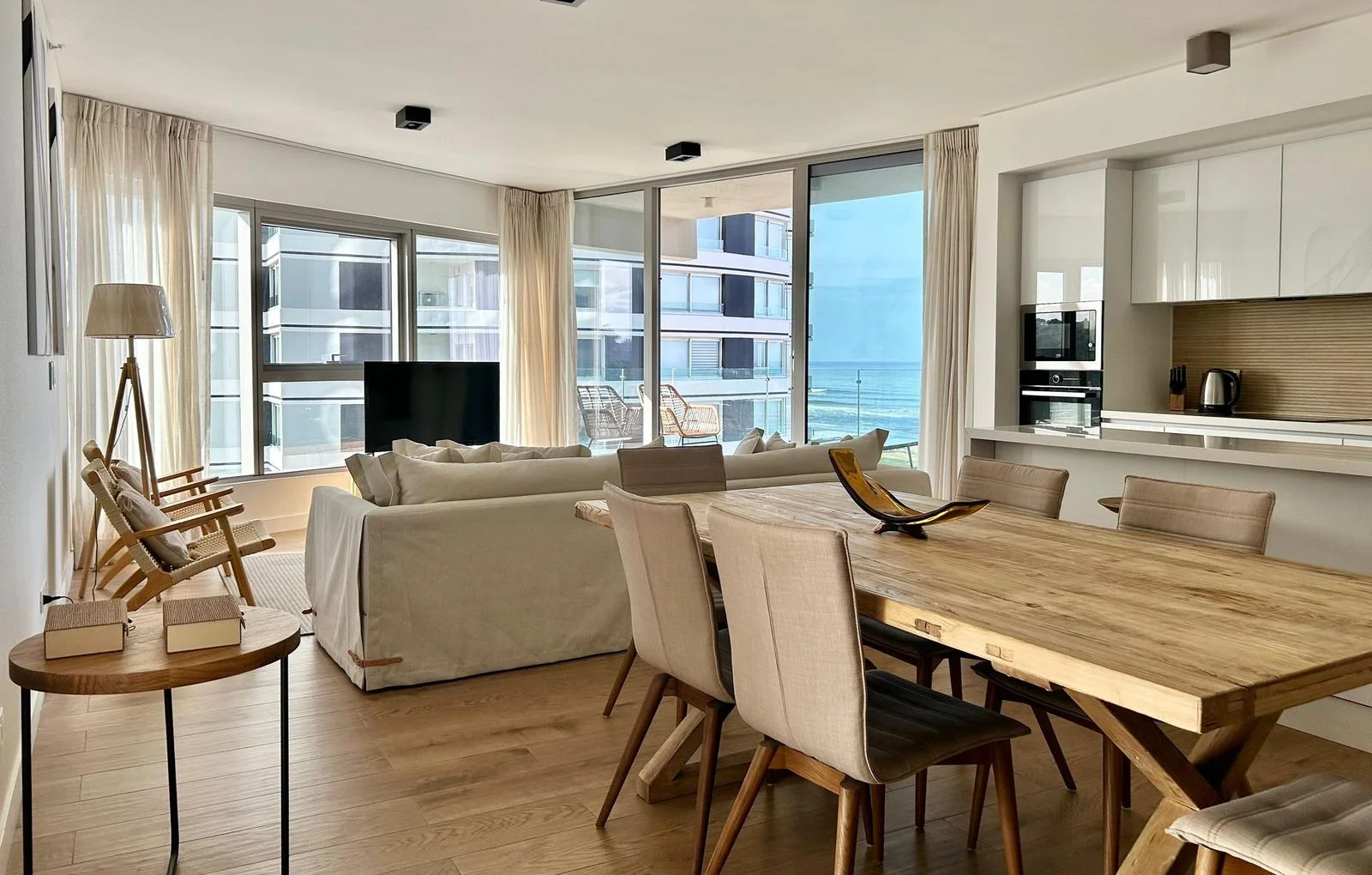 Espectacular departamento a estrenar frente al mar totalmente equipado para vivir todo el año.Living comedor esquinero con cocina integrada totalmente equipada, salida a la terraza. Toilette.