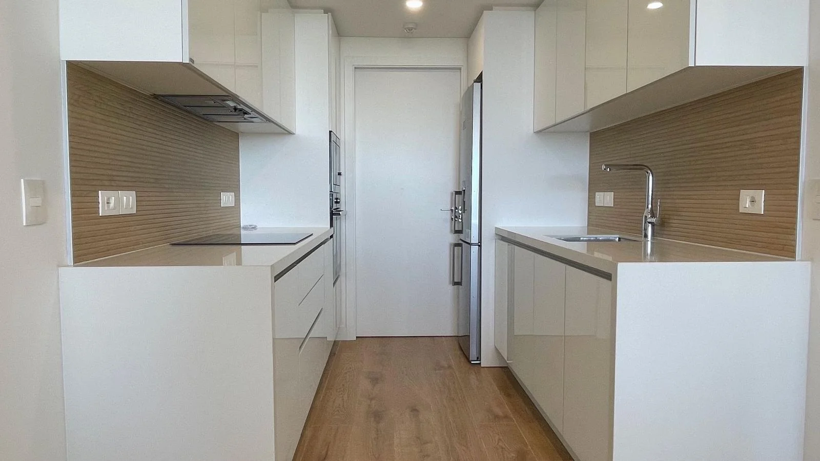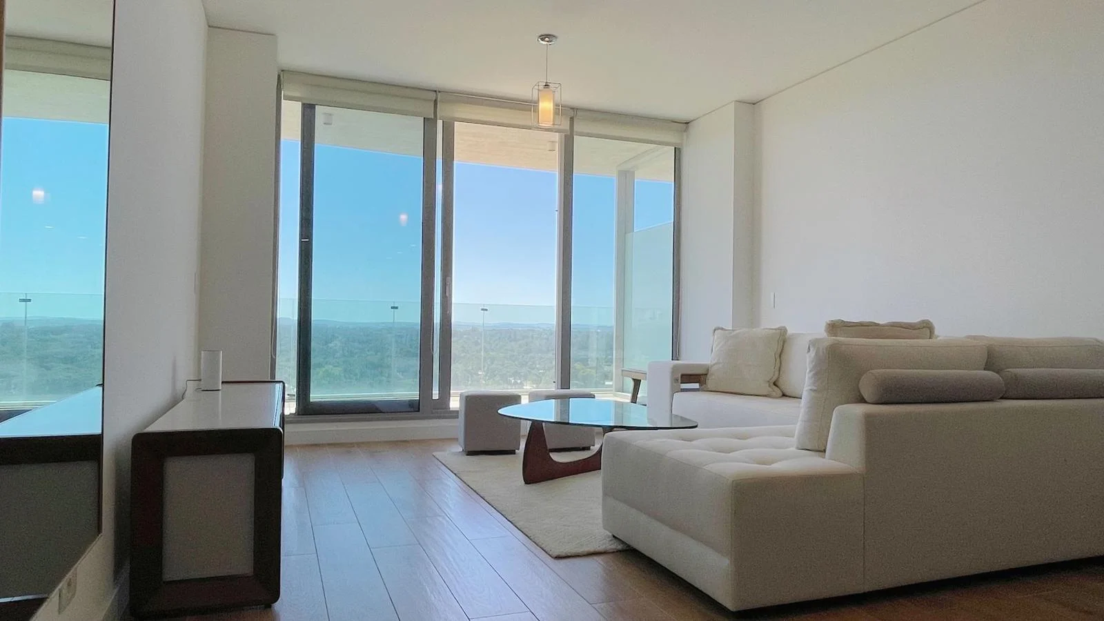 Amplio departamento a estrenar. Living comedor con salida a la terraza y vista al mar con la puesta de sol, cocina integrada y lavadero con lava-secarropas.
