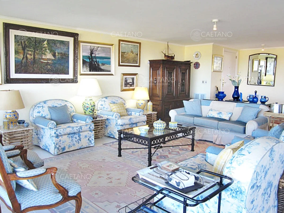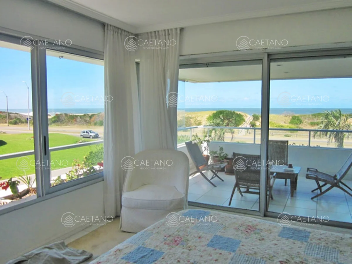 Venta de Apartamento 4 DORMITORIOS + DEPENDENCIA en PLAYA BRAVA, Punta del Este. Dúplex de 400 m2. en primera línea de Playa Brava vista directa al mar. En planta alta 4 dormitorios (2 de ellos en suite) y dependencia de servicio con baño, toilette. En planta baja y con comunicación interna por escalera posee un amplio estar/playroom con baño y patio abierto en L. Garage para 2 autos. Completos amenities de calidad. PRECIO DE VENTA NO INCLUYE MOBILIARIO.