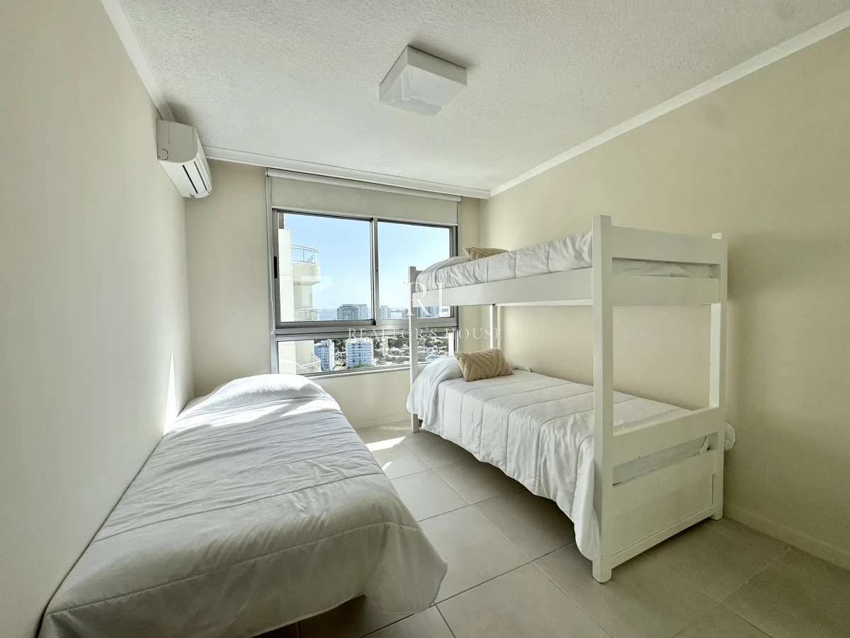 La propiedad se compone de 3 dormitorios en suite con amplios espacios y una vista inmejorable a playa brava y mansa.