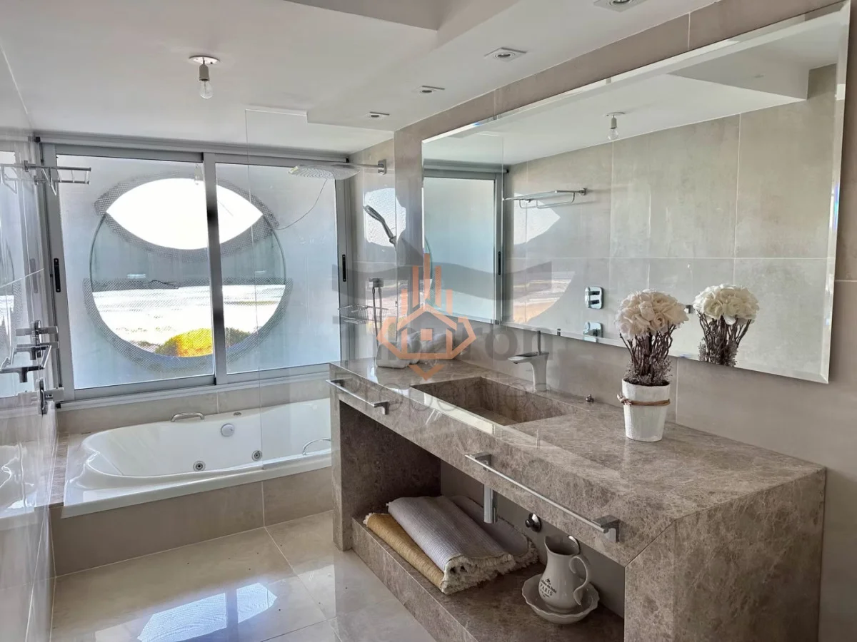 - Gran living comedor con estufa a leña y terraza con doble ventanal, con la posibilidad de mantenerla abierta o cerrada, frente al mar.