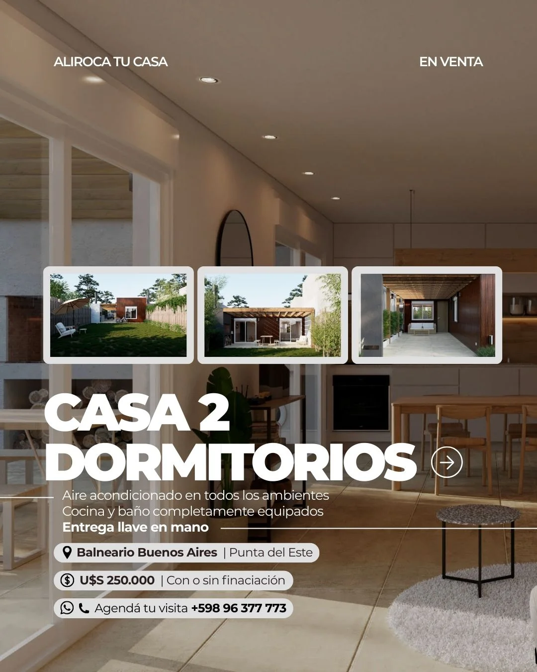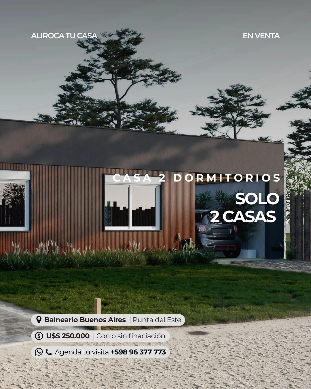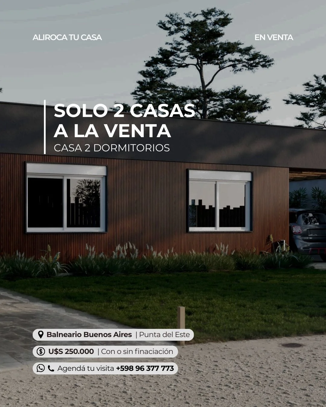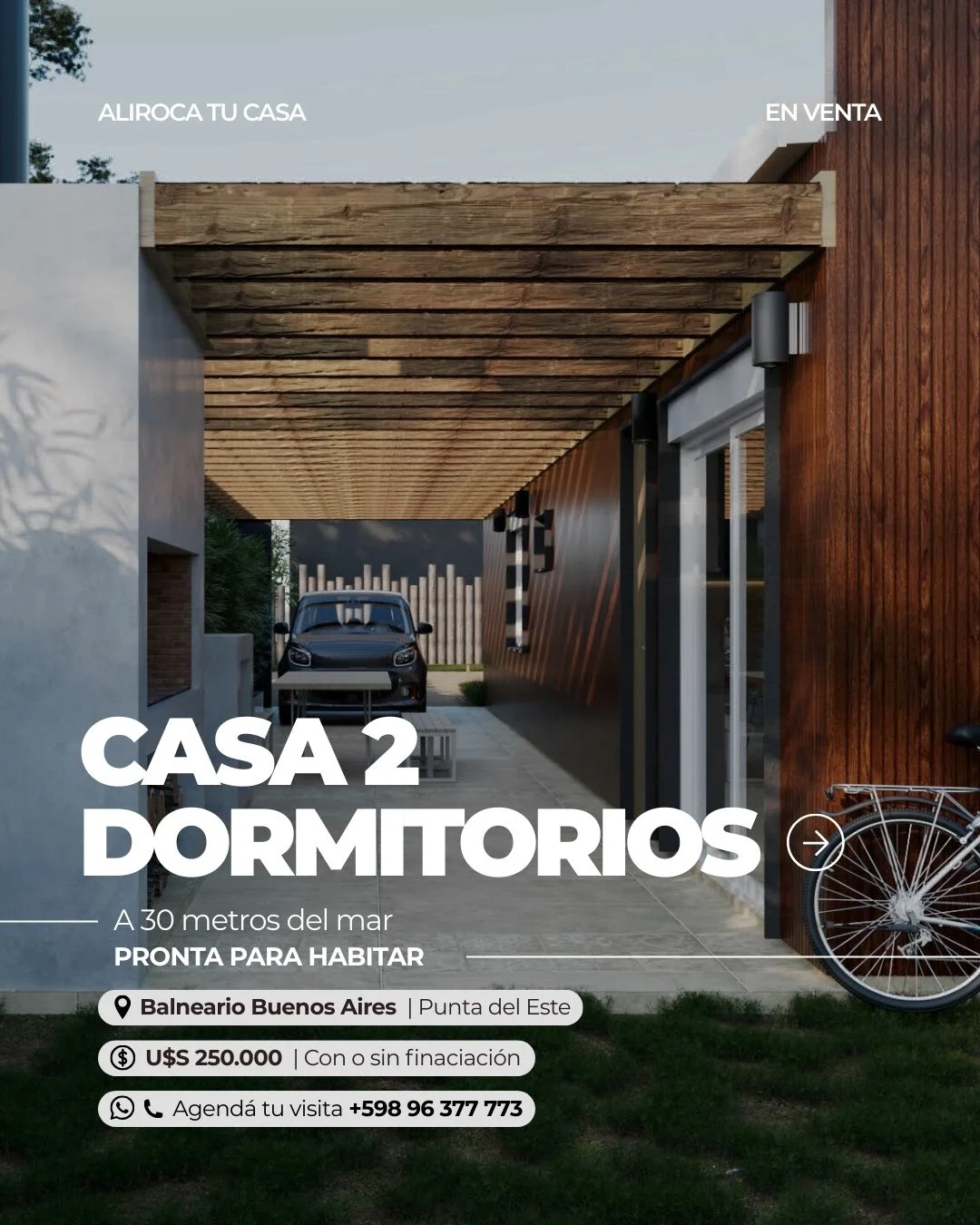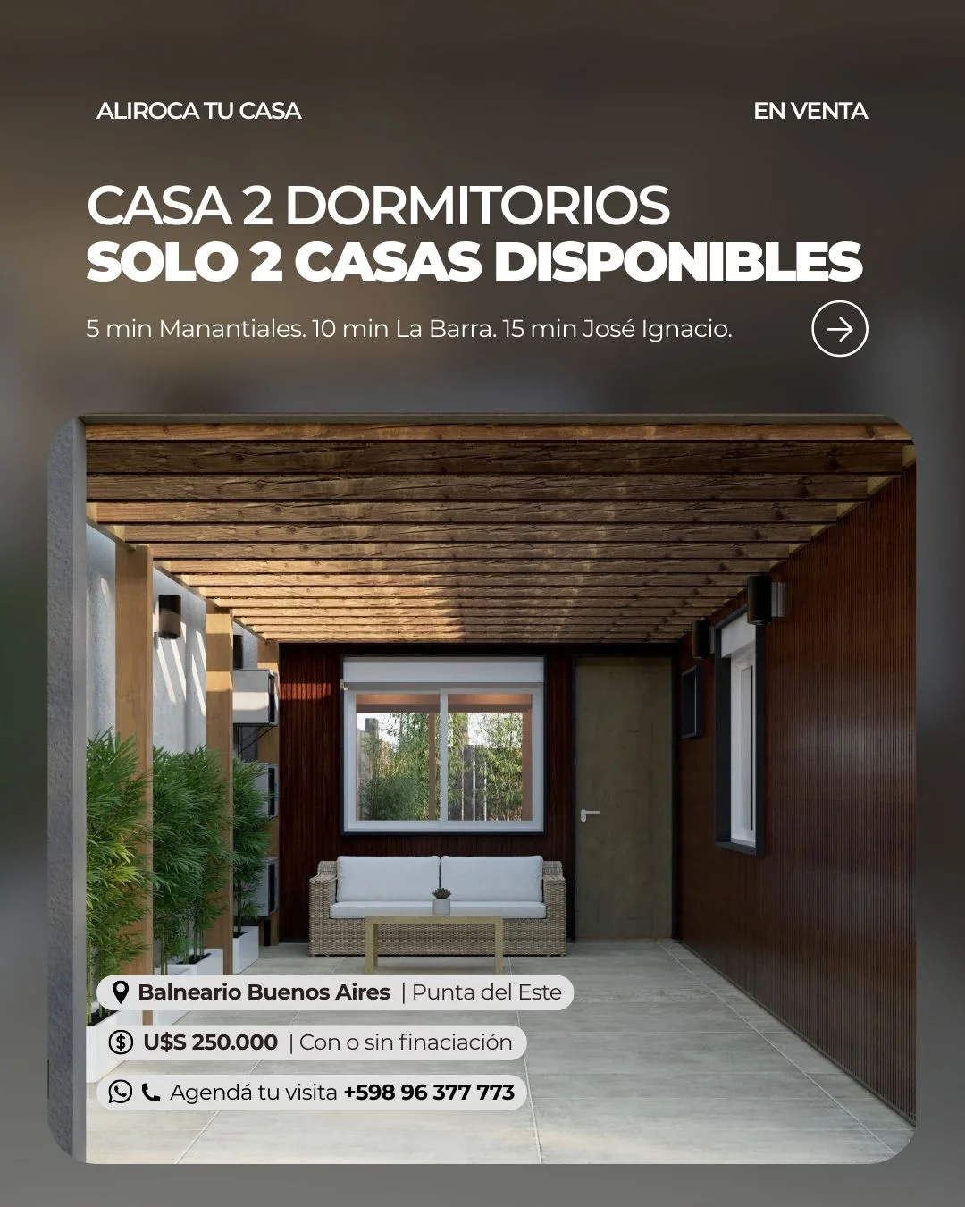 Esta cautivadora propiedad en venta se encuentra ubicada en Maldonado, en Balneario Buenos Aires, brindando un entorno tranquilo y cercano a todos los servicios. La casa de 2 dormitorios y 1 baño ofrece un diseño moderno y funcional, ideal para parejas o pequeñas familias que buscan comodidad y estilo. Con un total de 111 m2, esta vivienda a estrenar cuenta con amenidades que incluyen terraza, lavadero, aire acondicionado y piso de porcelanato, ofreciendo un ambiente acogedor y sofisticado.