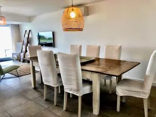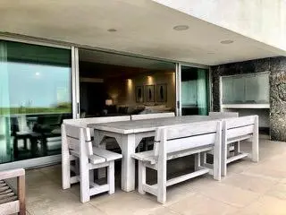 Excelente departamennto de 3 dormitorios en suite en la mejor ubicacion de Montoya frente a la playa. Living comedor que abre a una gran terraza con barbecue y vista al mar. Toilette,comodisima cocina muy bien equipada y cuarto de servicio. Esturion Montoya ofrece servicio de mucama,de playa,gym y 2 piscinas climatizadas,una de ellas interna. Muy cerca del centro de La Barra donde hay bistros,boutiques,y galerias de arte.