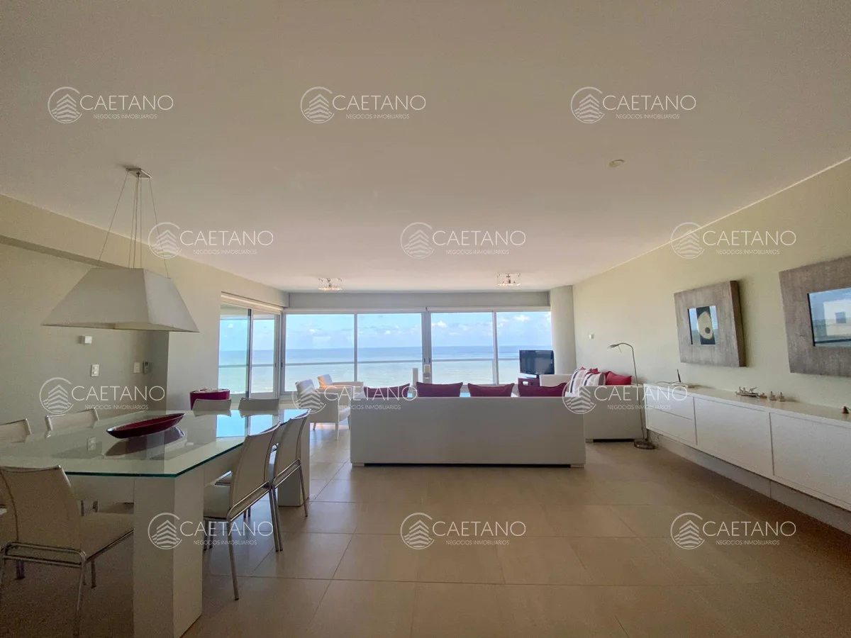Amplio living comedor con vista al mar.