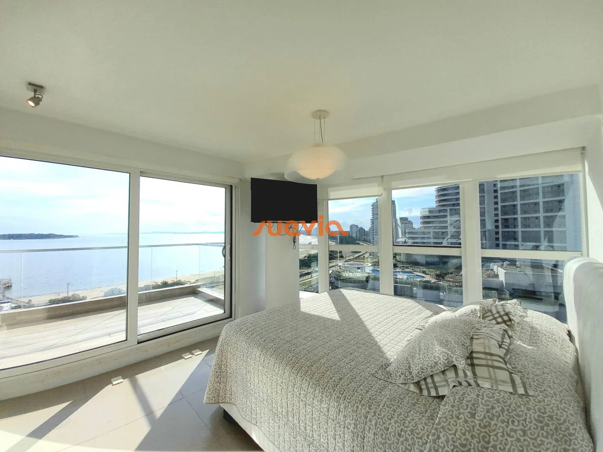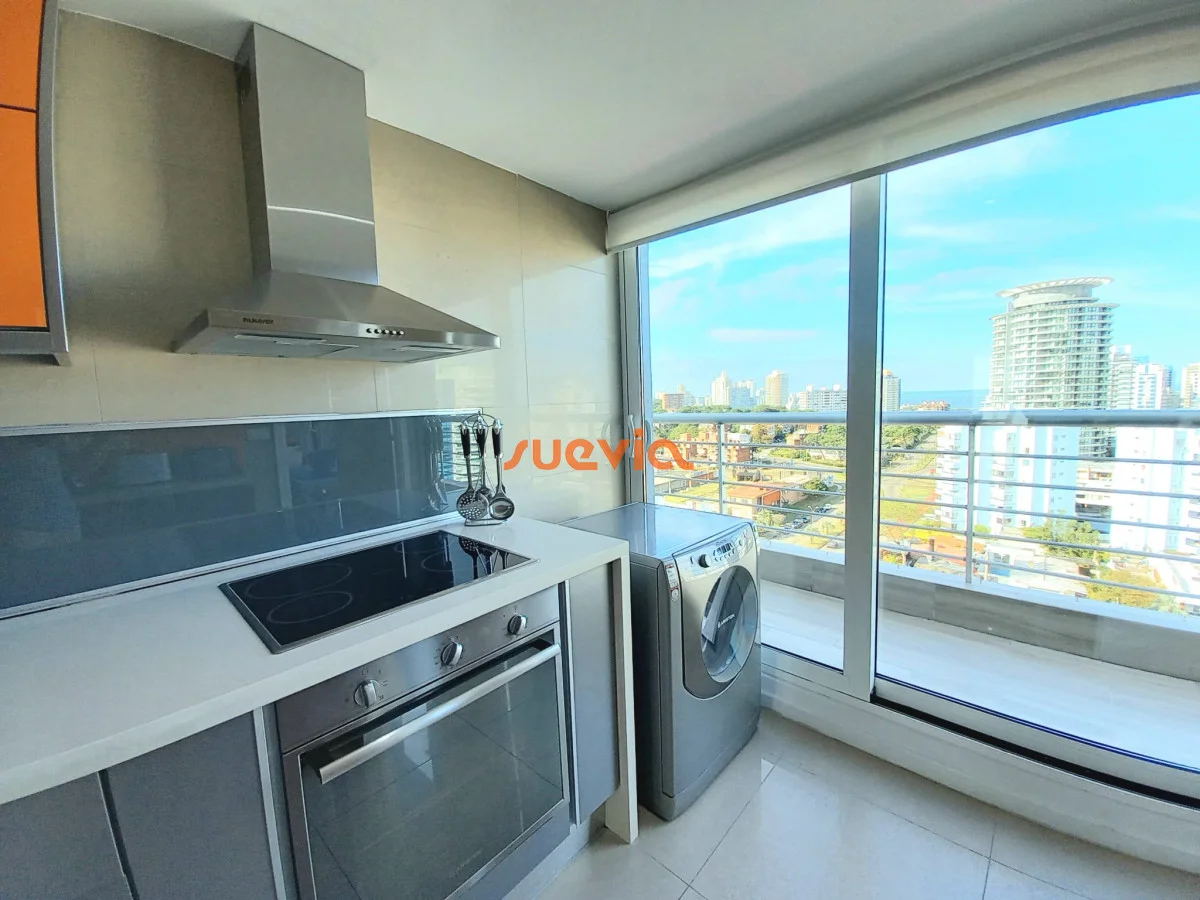 Compuesto por tres dormitorios en suite, más toilette. Luminoso living comedor con salida al balcón con espectacular vista a Playa Mansa. Cocina definida, bien equipada. Dependencia de servicio completa.