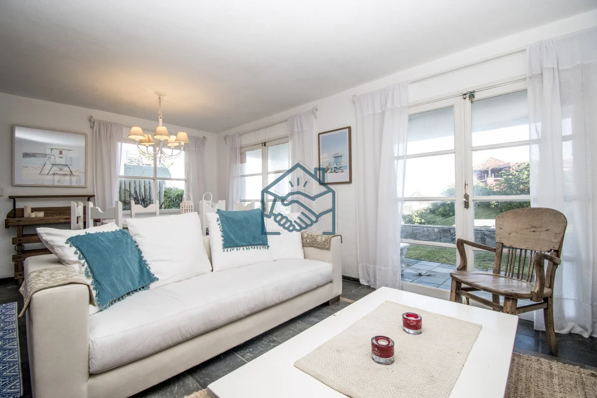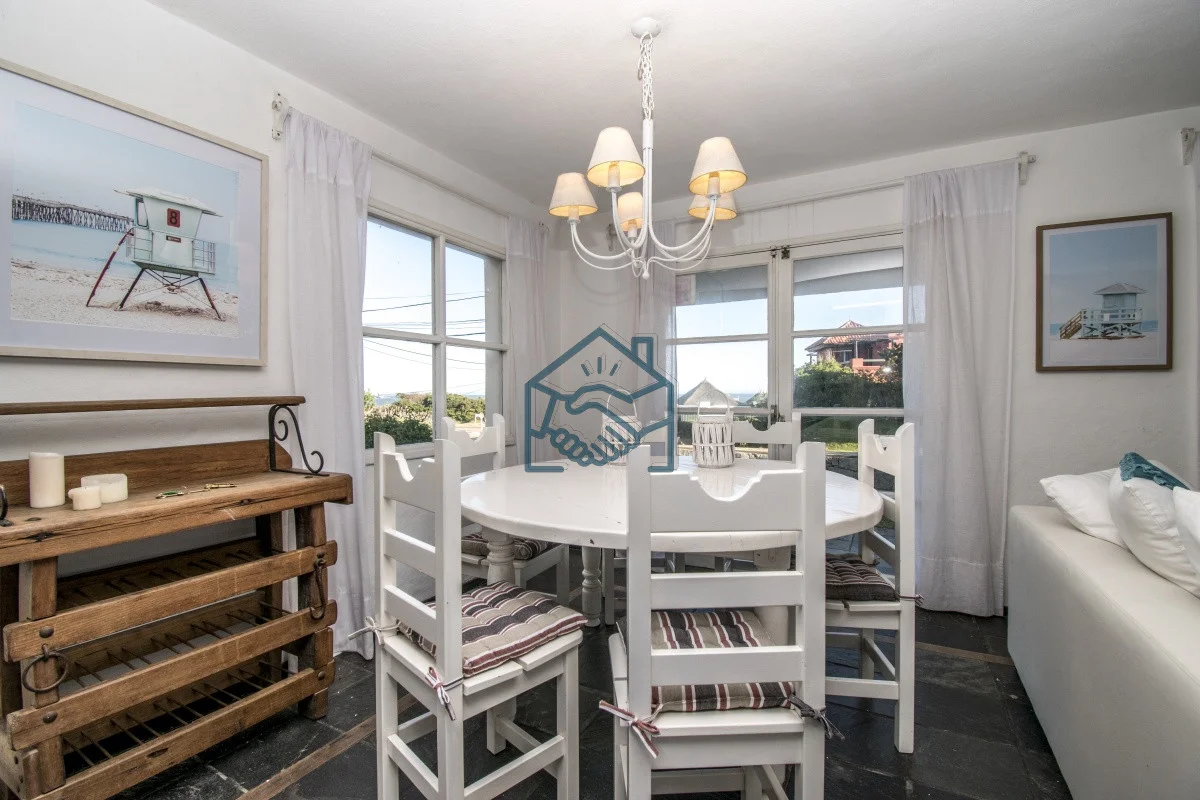 Distribuida en dos cómodas plantas. Ubicándose en la primera: living comedor amplio y luminoso al frente con salida al porche de entrada y vista al mar, toilette de visitas, cocina definida con acceso al jardín y dormitorio de servicio con baño. En planta alta se encuentran tres cómodos dormitorios, dos baños completos, el principal en suite con salida al balcón y vista a la playa.