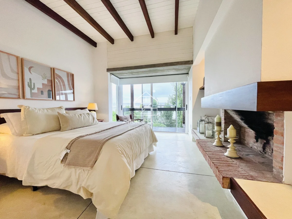 Dispone de amplio living comedor con excelente vista hacia el mar, estufa a leña, y salida al deck que rodea toda la planta alta; donde está ubicado el parrillero y estar exterior. Cocina bien equipada. Cinco cómodos dormitorios, dos de ellos en suite, más dependencia de servicio con baño (capacidad para 11 plazas en confortables sommiers).