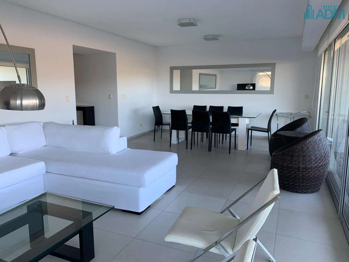 Muy amplio living comedor rodeado por la terraza vidriada.