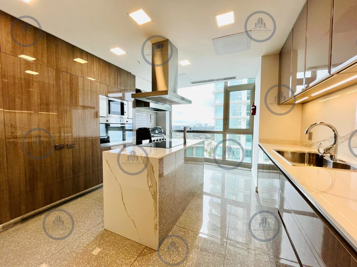 La cocina está completamente equipada con electrodomésticos modernos, incluyendo lavavajillas y microondas. Además, cuenta con un amplio living comedor con vistas plenas al Mar, perfecto para reuniones y cenas.