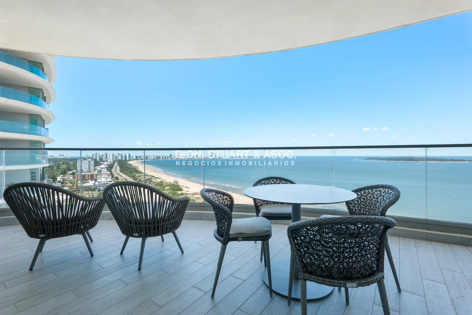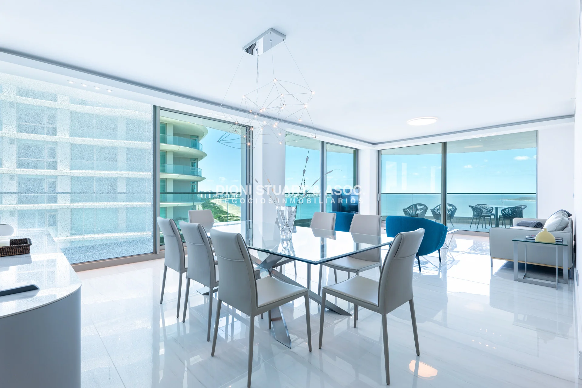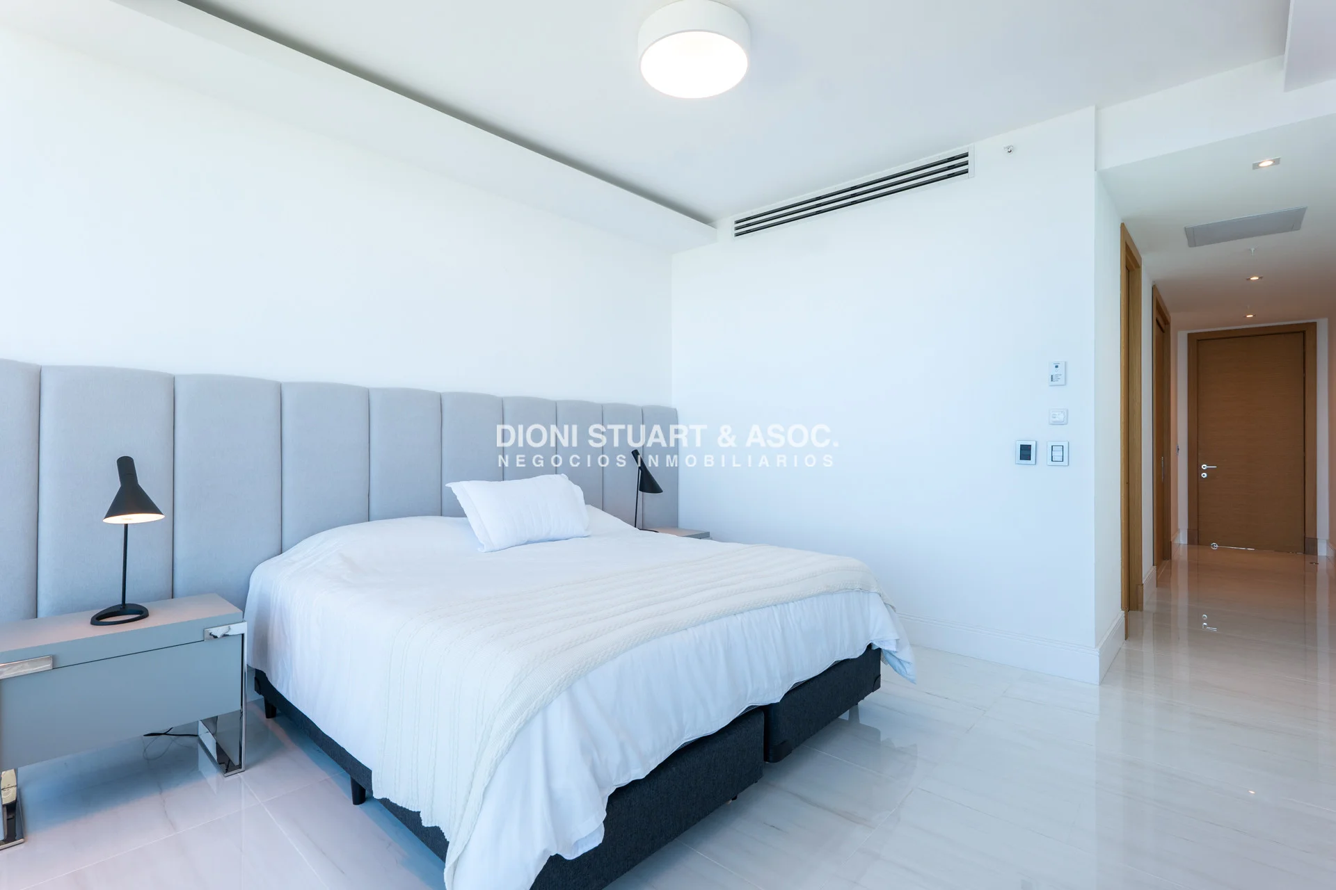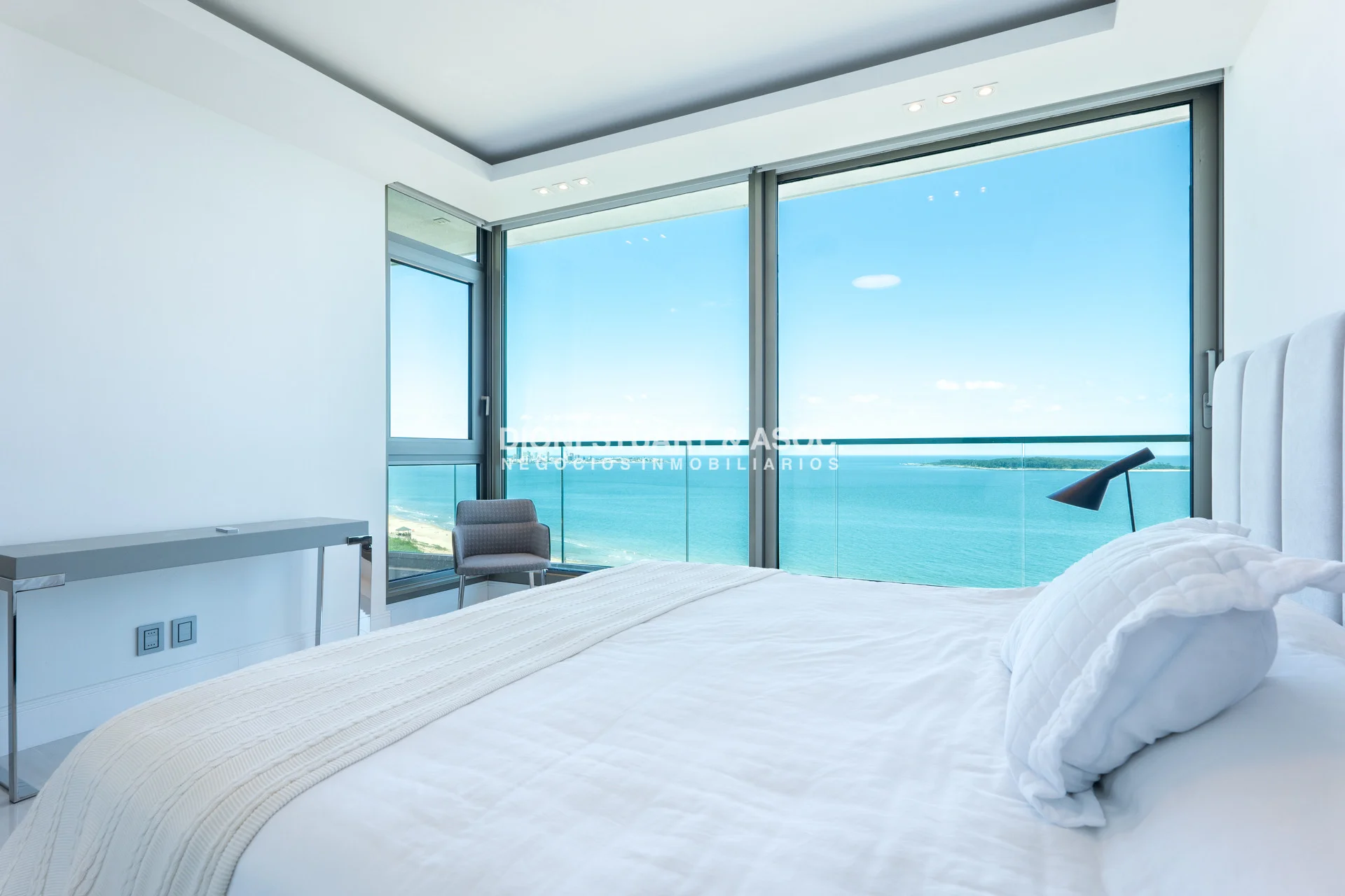 En total esta unidad cuenta con 260m2, donde destacan su amplio living-comedor y master suite con vistas espectaculares a toda la bahia de Punta del Este, Isla Gorriti y el famoso sunset de Punta. Master suite con walk in closet. Sus otros tres dormitorios en suite son contrafrentes-laterales con vista al amanecer, todos con placares empotrados y muy buena circulación.