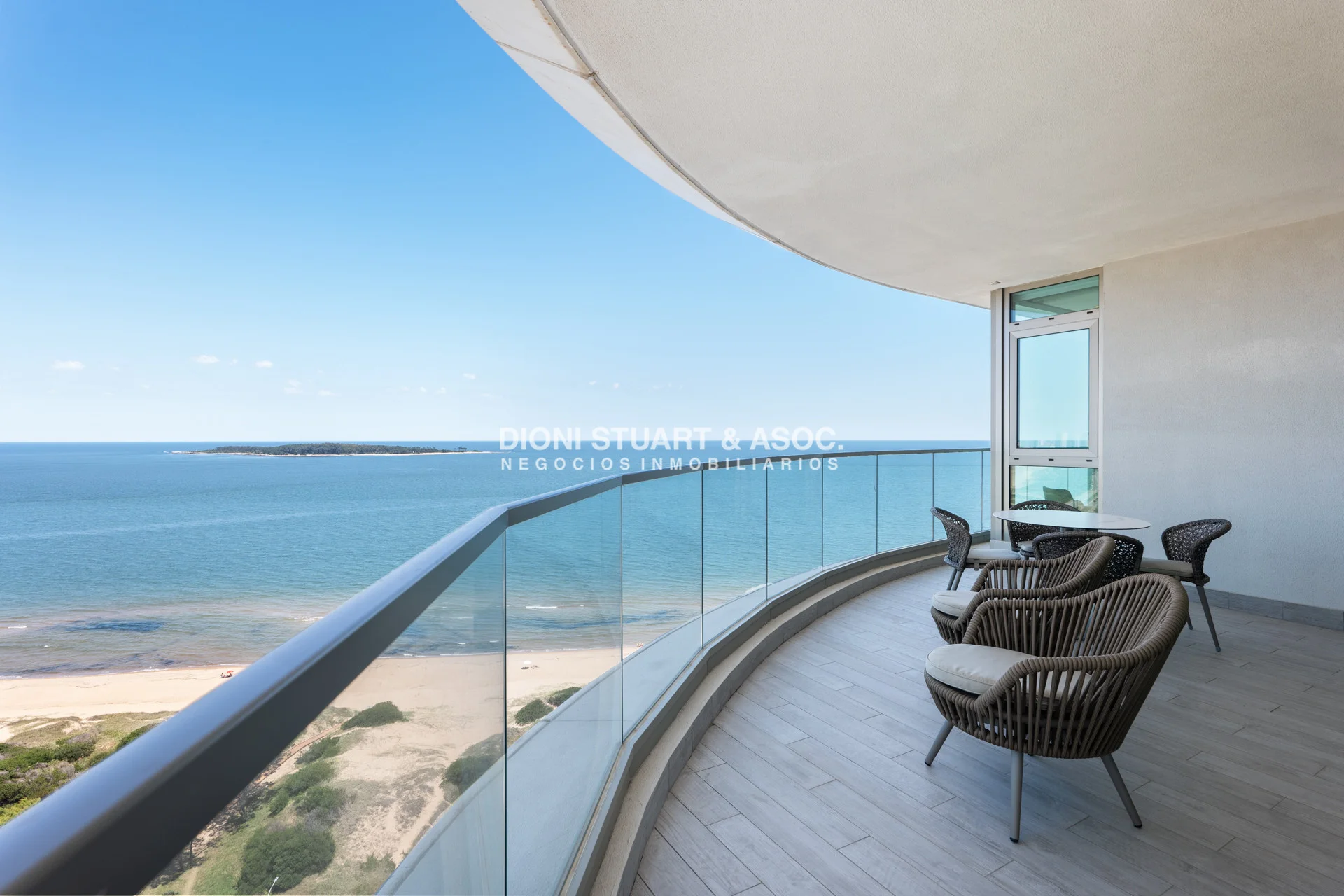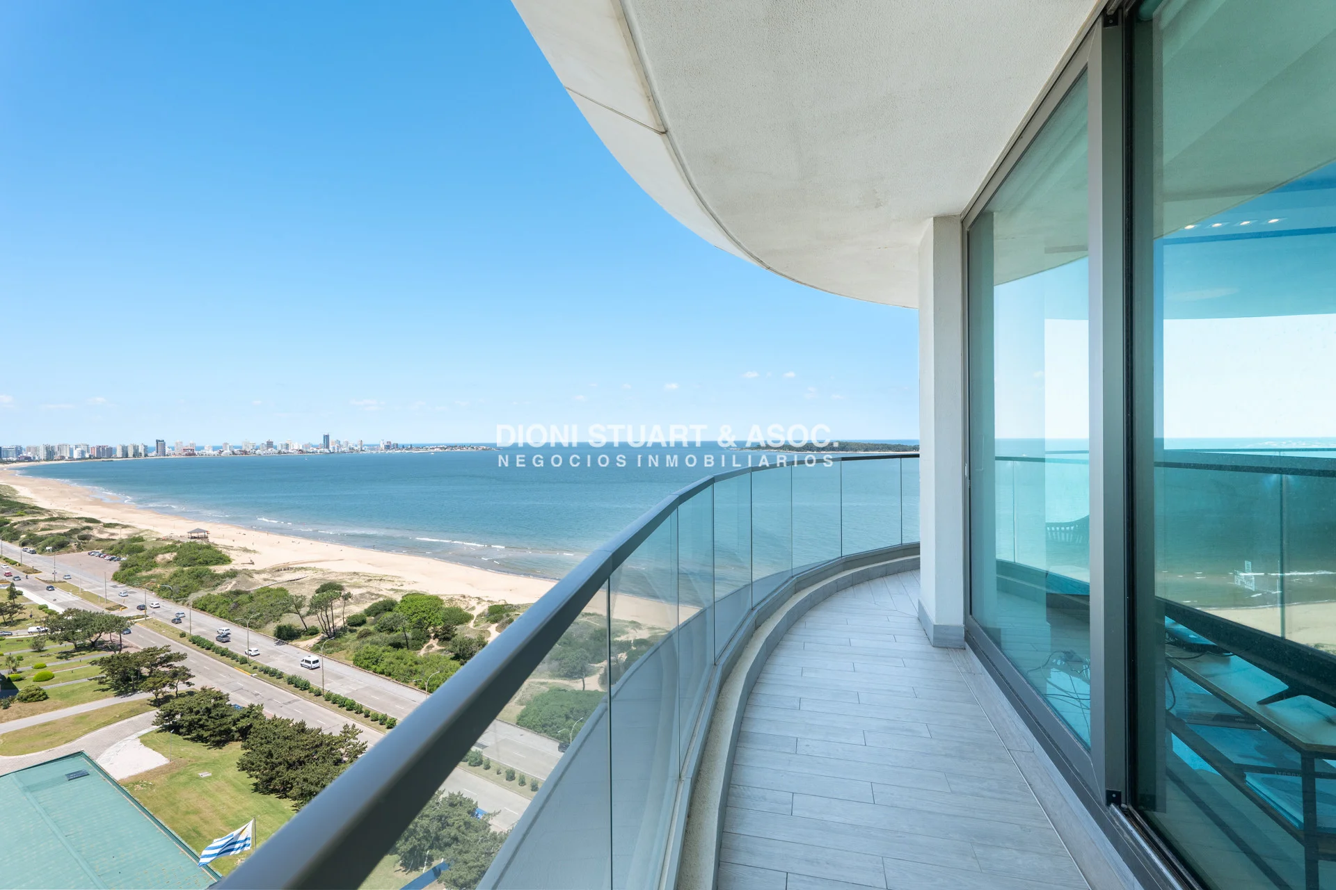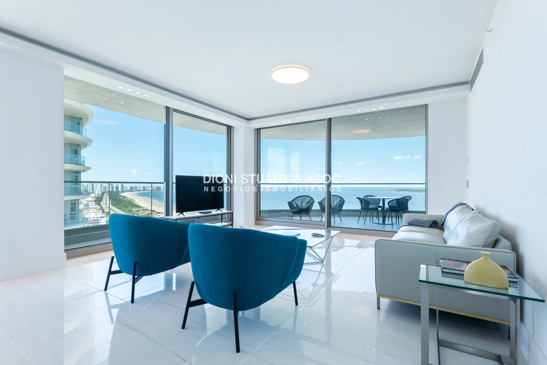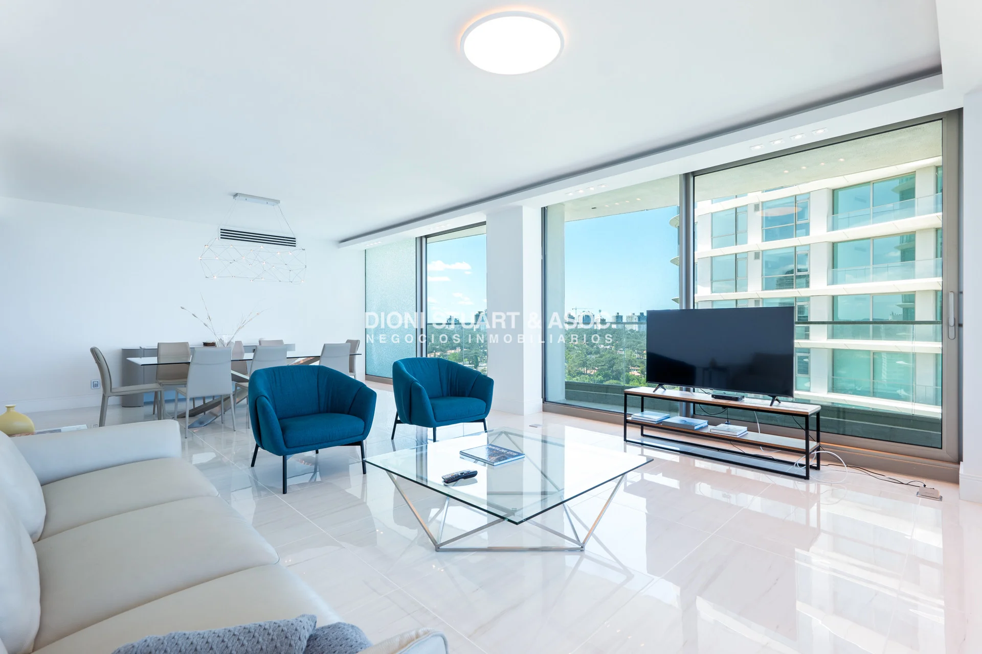 En total esta unidad cuenta con 260m2, donde destacan su amplio living-comedor y master suite con vistas espectaculares a toda la bahia de Punta del Este, Isla Gorriti y el famoso sunset de Punta. Master suite con walk in closet. Sus otros tres dormitorios en suite son contrafrentes-laterales con vista al amanecer, todos con placares empotrados y muy buena circulación.