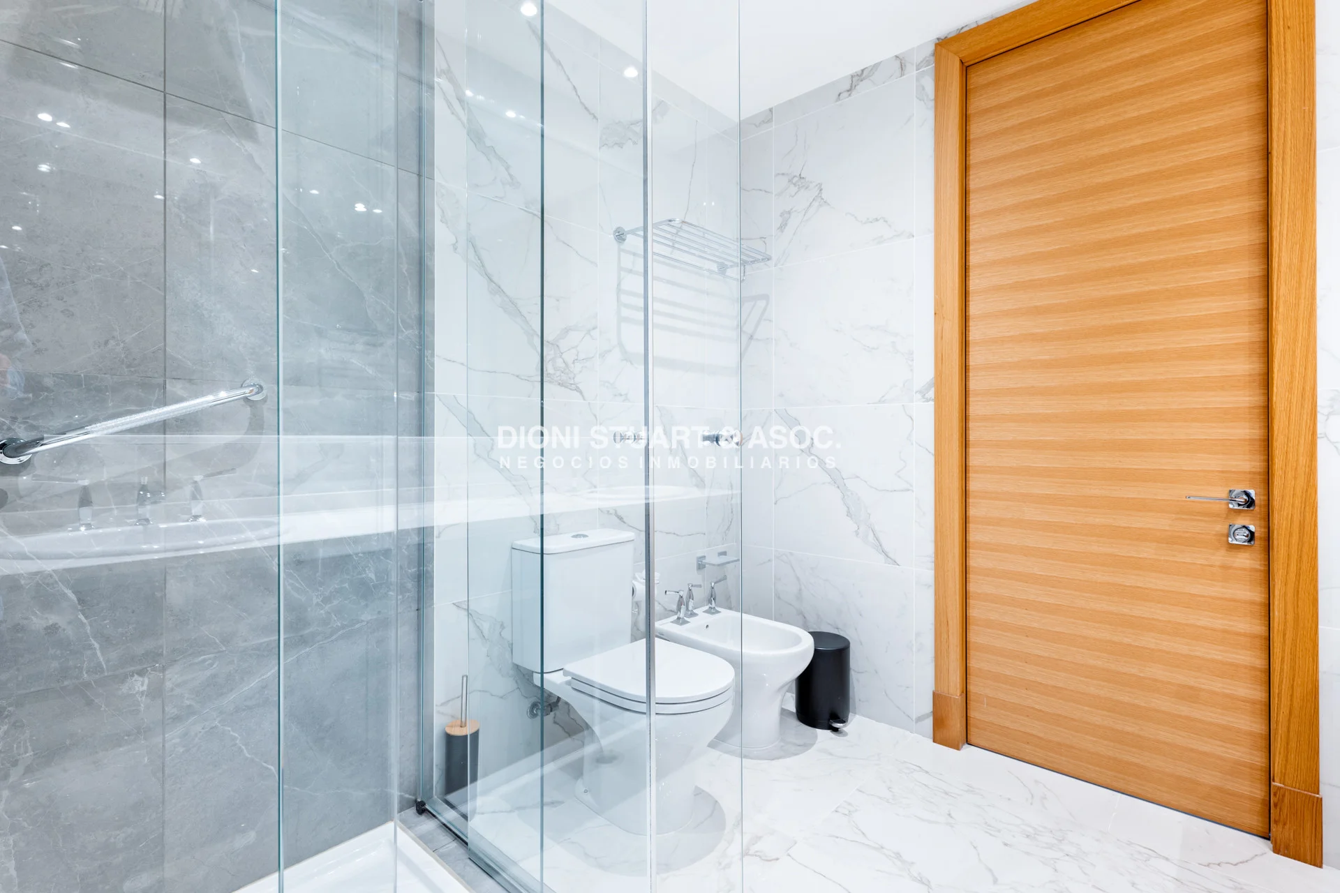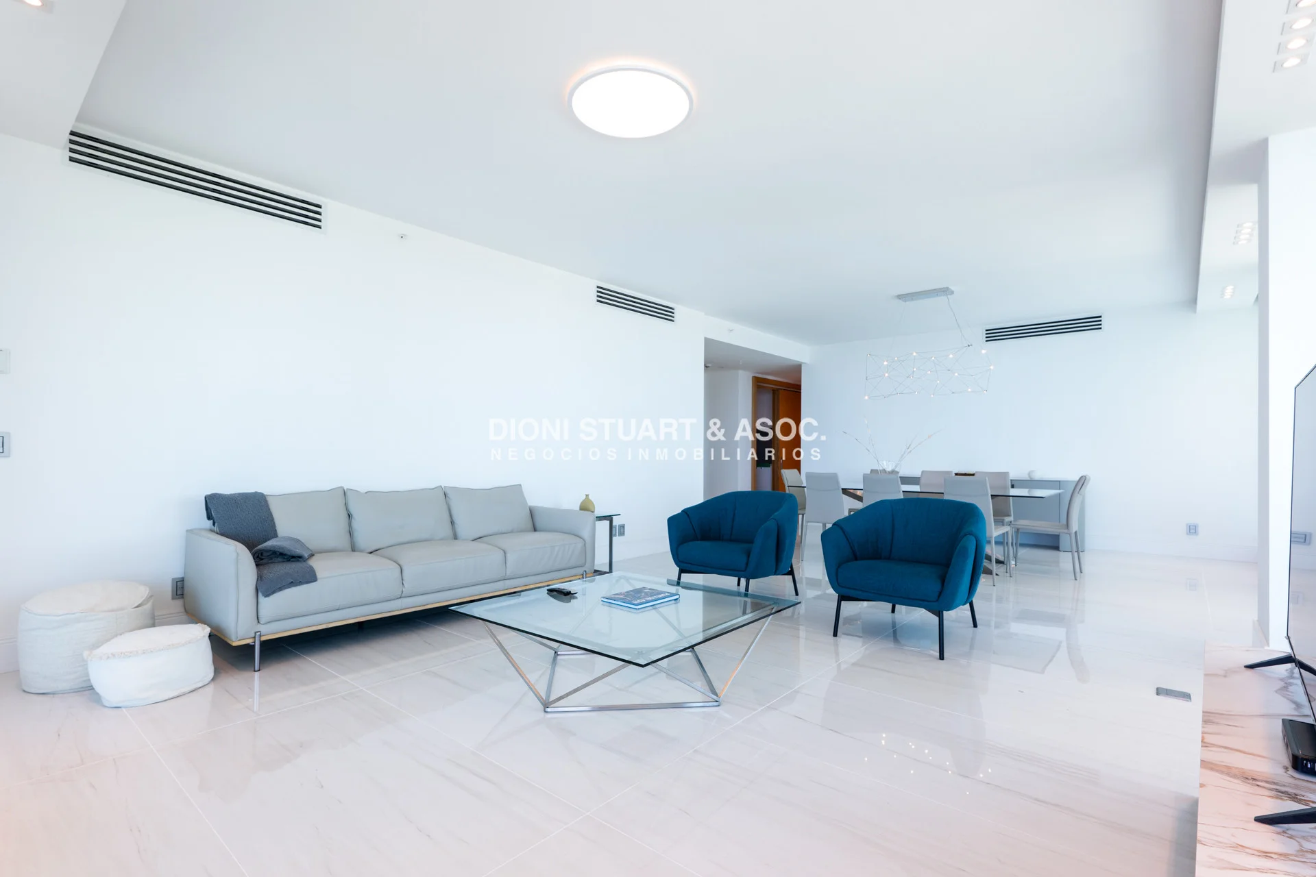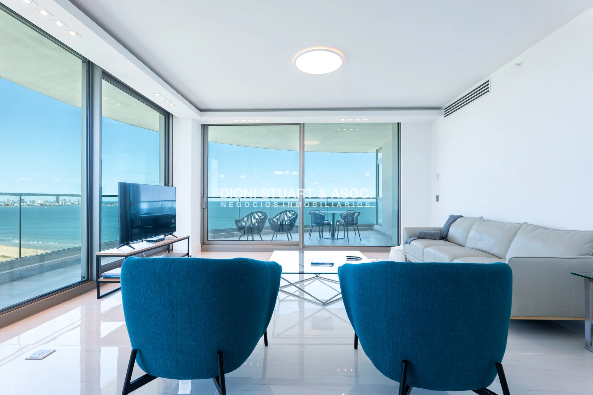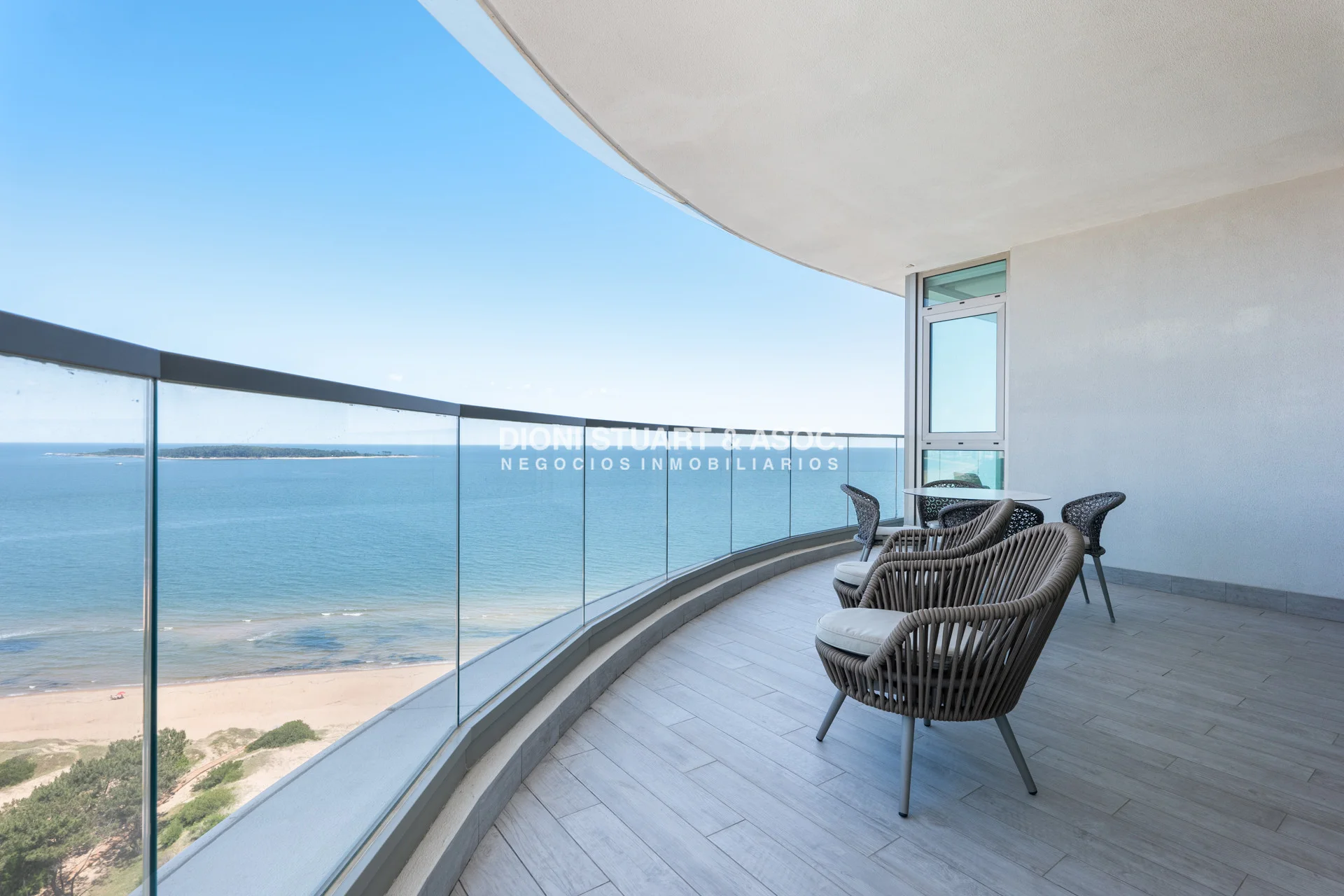 En total esta unidad cuenta con 260m2, donde destacan su amplio living-comedor y master suite con vistas espectaculares a toda la bahia de Punta del Este, Isla Gorriti y el famoso sunset de Punta. Master suite con walk in closet. Sus otros tres dormitorios en suite son contrafrentes-laterales con vista al amanecer, todos con placares empotrados y muy buena circulación.