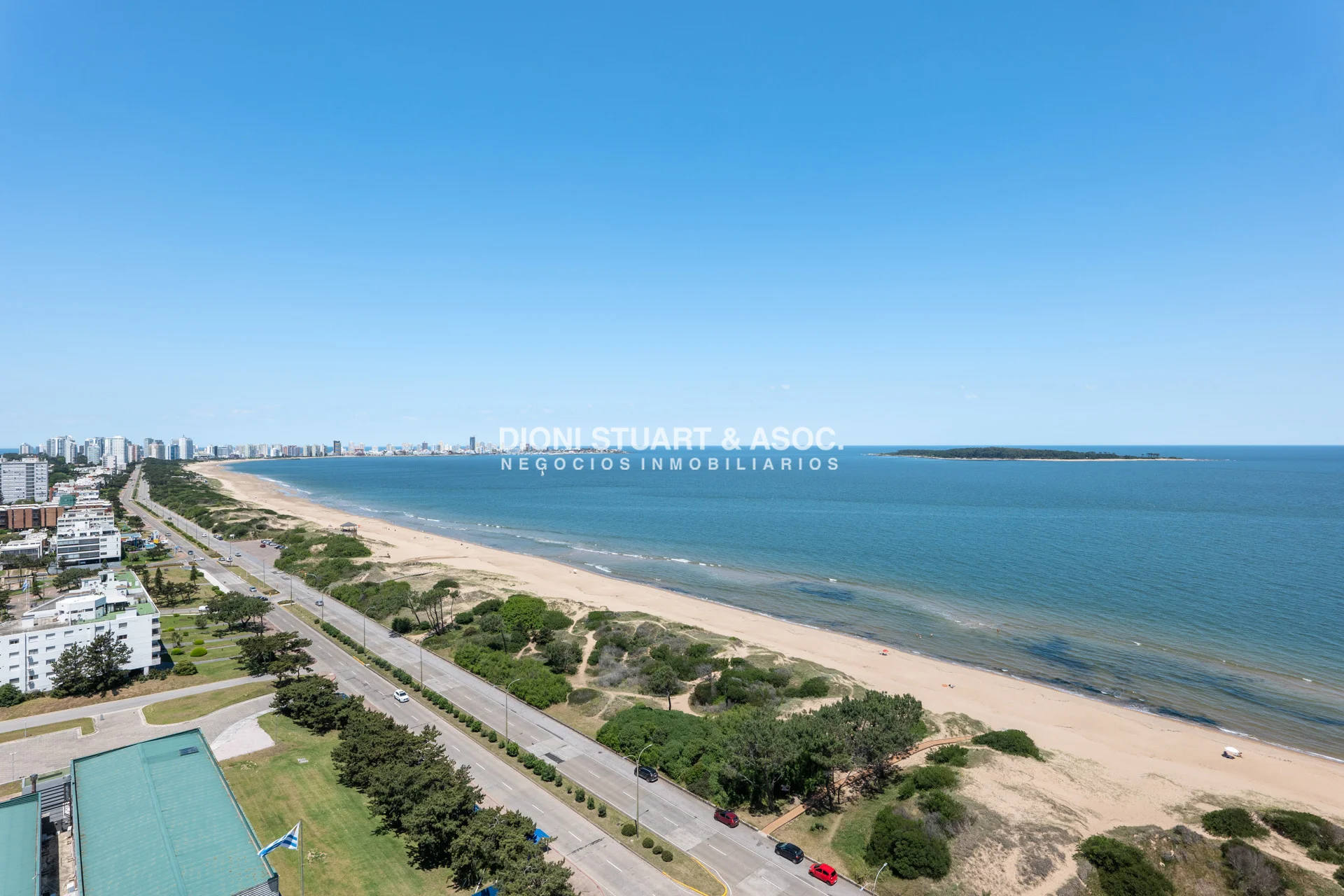 Departamento esquinero a Punta del Este de cuatro dormitorios en suite, cocina estilo americana con bbq, toilette y lavadero.