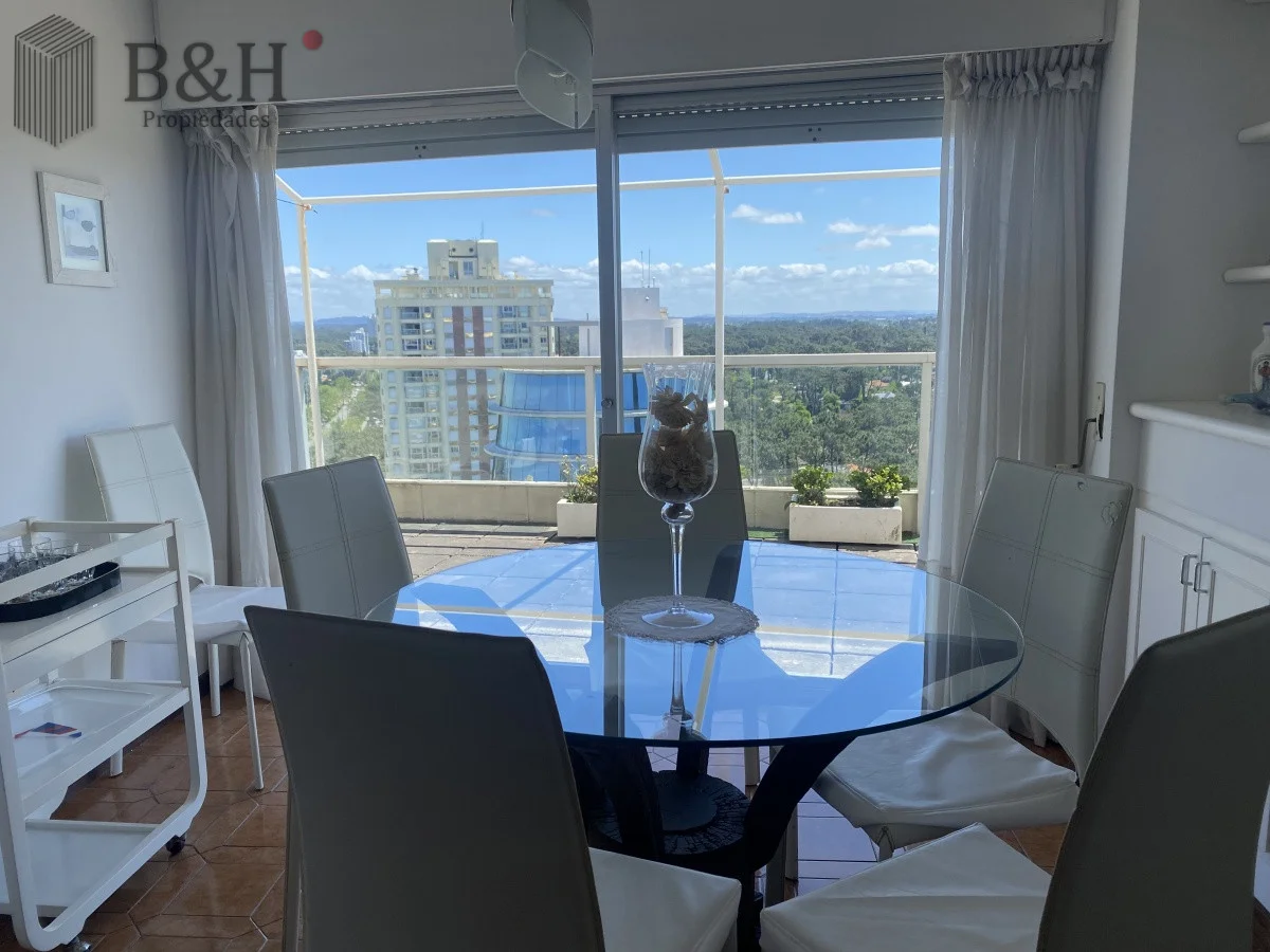 Pent house, gran terraza con vista panoramica a Punta del Este y alrededores. 2 dormitorios, 2 baños, living comedor, cocina con dependencia de servicio. Garage.