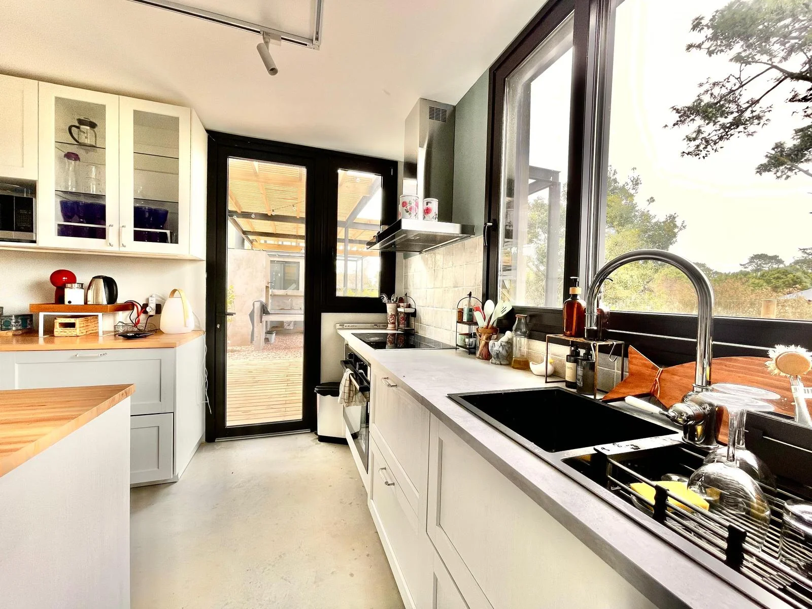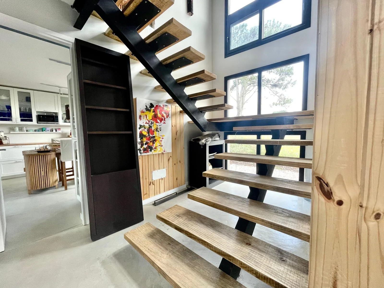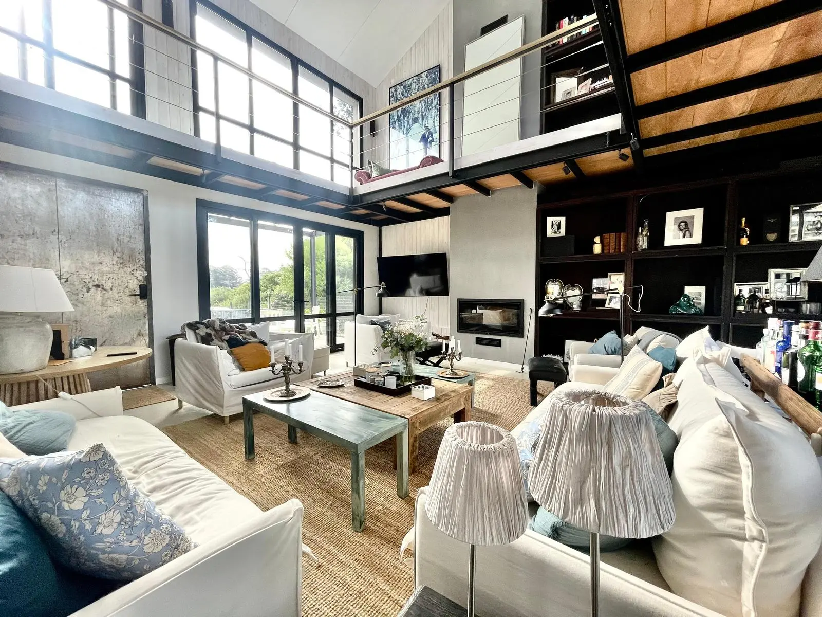 En el volumen principal, en planta baja, living comedor integrado, con comodos sofa y amplia mesa que se encuentra junto a la cocina, muy bien equipada. Toilette, lavadero y dependencia. En planta alta, hall de distribución donde hay dos sofa, escritorio, tv y la master suite.
